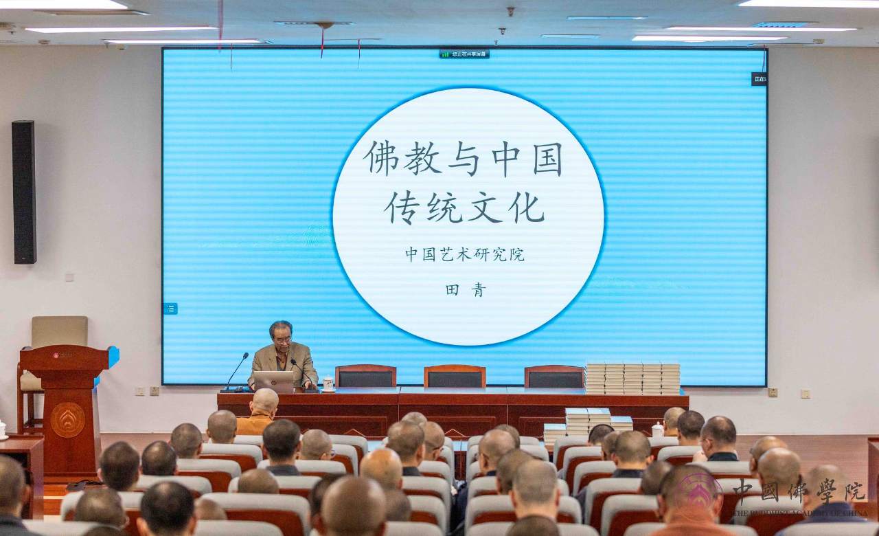 2024年4月12日,中国艺术研究院宗教艺术研究中心田青教授应邀来我院作了《佛教与中国传统文化》的讲座,全院师生参加讲座。讲座由我院常务副院长明海法师主持。