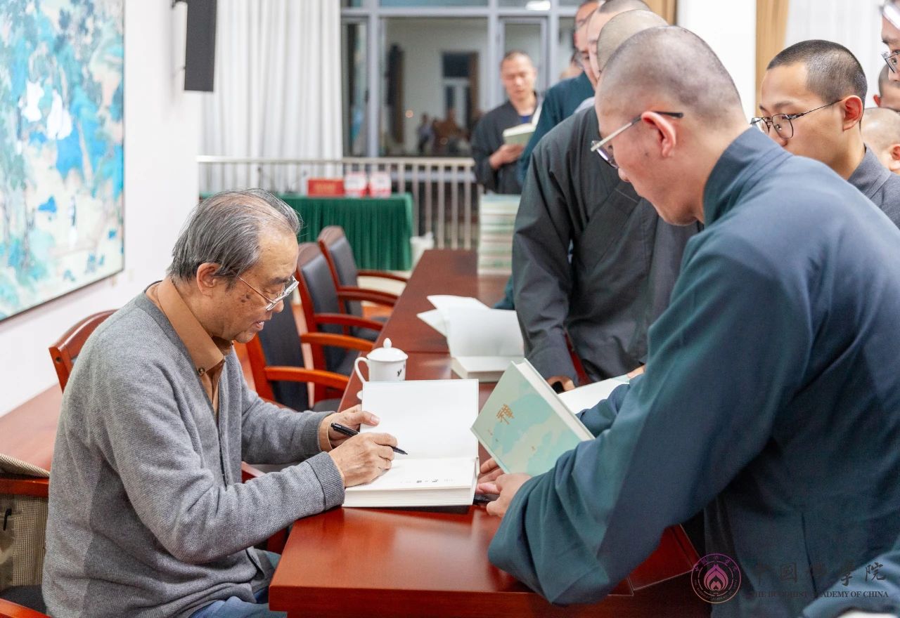 田青教授从佛教词汇对汉语词汇的丰富,以及佛教中关于灵魂观念、解脱生死观念对中国民众思想的影响等阐述佛教对中国人生命观的影响。并以具体事例说明佛教对社会各阶层产生的积极意义。谈及佛教对中国文学的作用,田青教授重点从俗讲对中国文学的影响;佛典对文人、知识分子的熏陶;佛教文学对中国文学的意义等方面阐述。在讲座中,田青教授还通过大家耳熟能详的禅宗偈颂与中国传统诗歌进行对比,说明中国诗歌从佛教文学中汲取的营养。佛教对中国的艺术也产生了重要影响,无论是雕塑、绘画、戏剧、音乐,都可以看到佛教的痕迹。在中国艺术的某些领域,佛教甚至占据了重要位置。田青教授认为,佛教对中国艺术的影响不仅是形式层面的,更有思想层面的。讲座结束后,田青教授与同学们亲切互动。