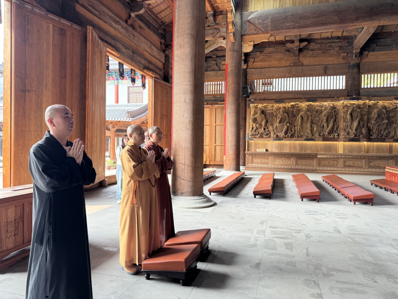 罗汉寺住持普了法师带领参访团参观了寺院各建筑,并详细介绍了罗汉寺的历史建设及发展情况。