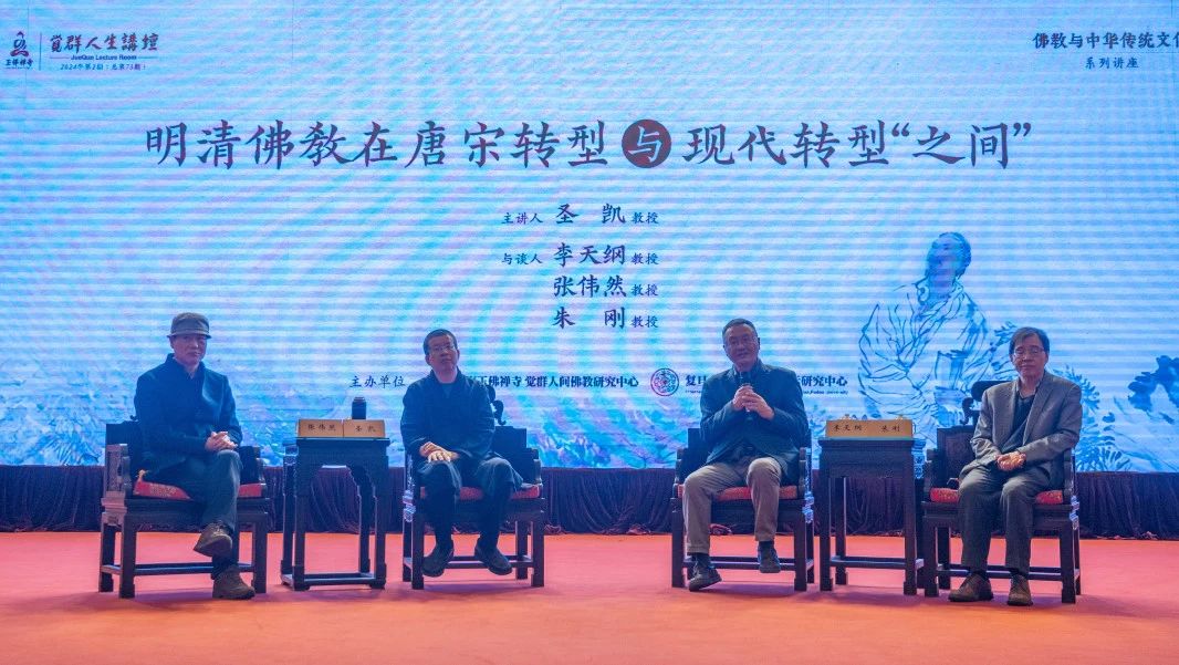 2024年4月20日上午,上海玉佛禅寺觉群人生讲坛特邀清华大学哲学系圣凯教授,以《明清佛教在唐宋转型与现代转型“之间”》为题,为大众梳理了佛教传入中国后的历史发展脉络,并重点讲述了明清时期佛教所呈现出的特点。