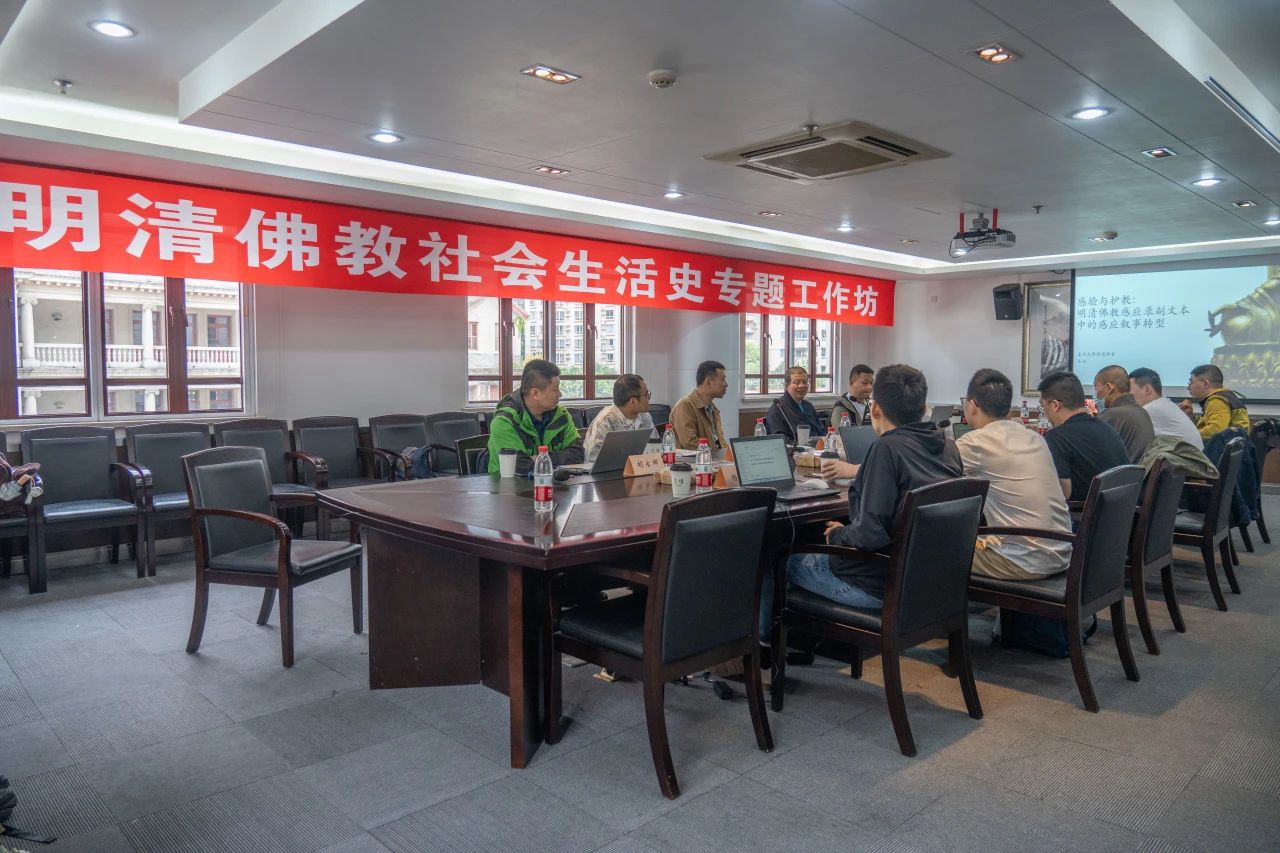 第二场报告由南京师范大学杨剑霄教授主持,探讨了华严与禅宗之间的关系及成佛之戏议题。下午的两场会议由湖南大学陈帅和南京大学胡永辉教授主持,首先由雷天宇、李伟、杨遇青三位教授分别就“‘肉身观音’传说”、“岭南山地佛教寺产”和“三峰之禅”等学术话题进行了论述,接着,杨奇霖、王启元两位学者分享了清朝与青海和硕特蒙古政教互动以及晚明佛教相关历史文献。