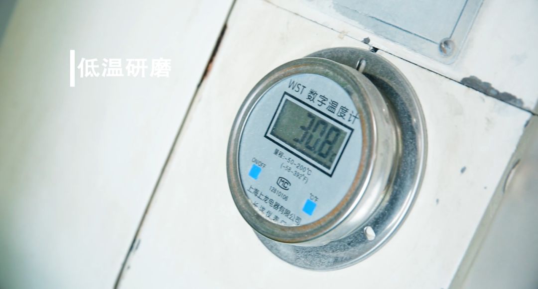 这个低温加工技术是有国家专利的,结合石磨加工工艺与现代机械加工的优势,低速度、低温度的状态下研磨小麦,石磨机转速只有 20 转/分钟,温度保持在 45 度以下。