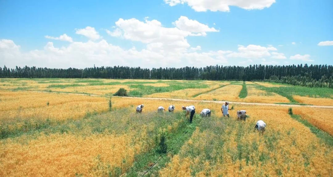 终于到达了我们此行的真的目的地——塔克拉玛干大沙漠旁的一片麦田。是的,小编这趟阿克苏之行,不是为了苹果,而是为了面粉。