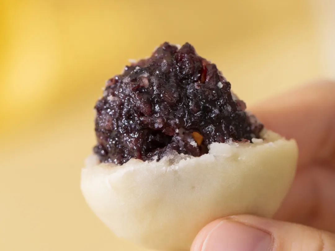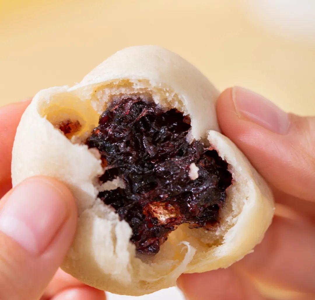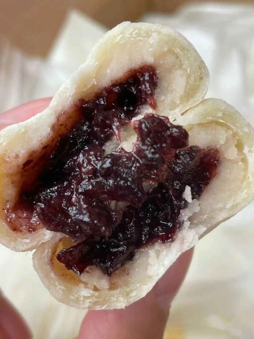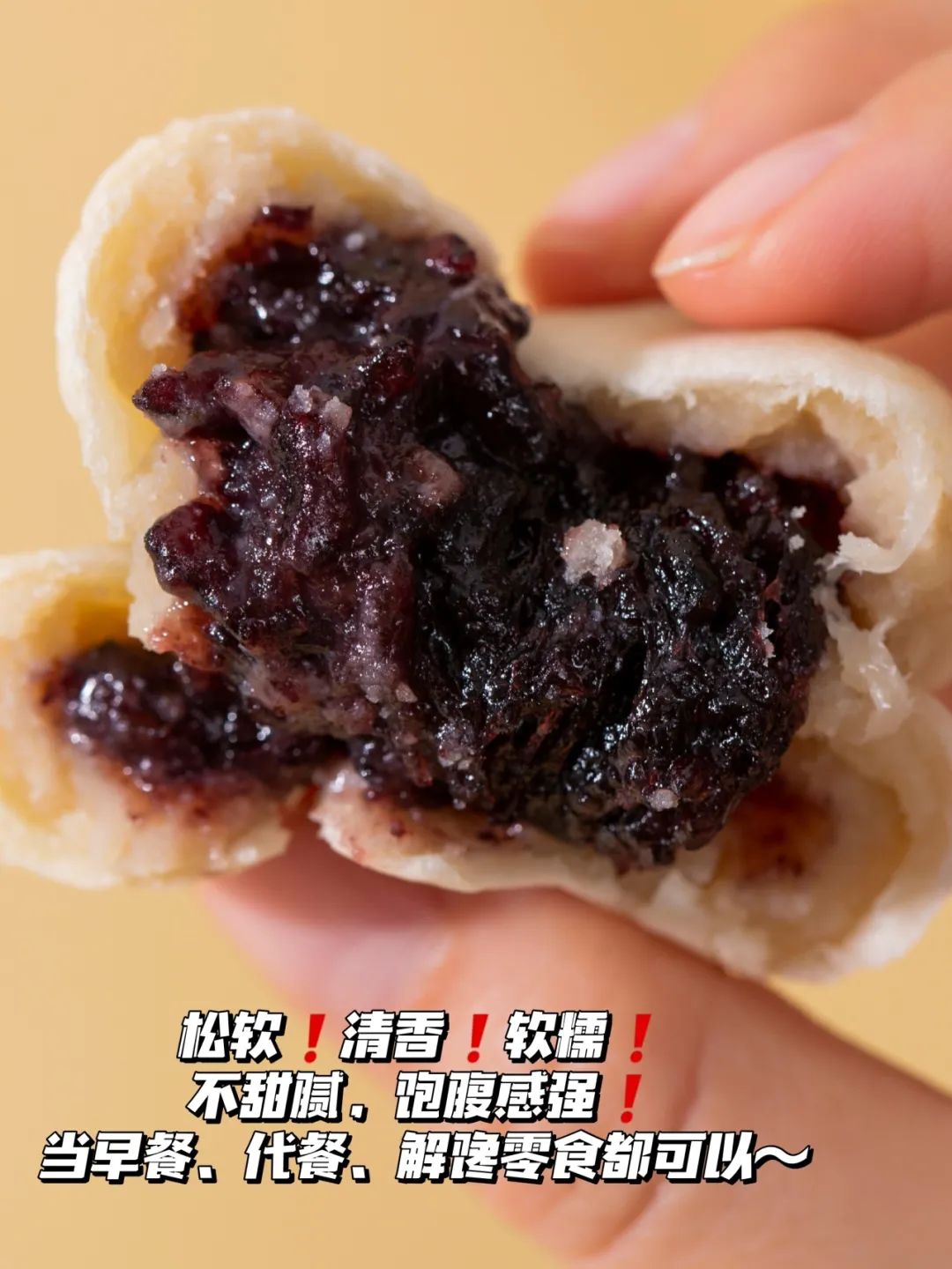 先泡发再蒸煮的紫米内馅儿,不是那种坨到一起的口感,而是软糯清香中还有丝丝的颗粒感,吃完还有淡淡的回甘,简直太喜欢了!作为粗粮代表之一,紫米又很有饱腹感,