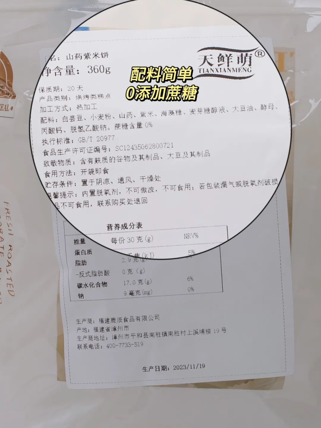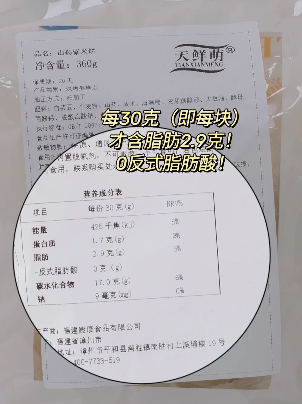 天鲜萌家新出的山药紫米饼,想要安利给嘴馋的朋友们!配料都是健康养生的好东西,白芸豆、紫米、山药……而且是0添加蔗糖!0反式脂肪酸!不甜腻,糯叽叽!平时工作学习累了,打开一个吃起来,瞬间解馋又饱腹~