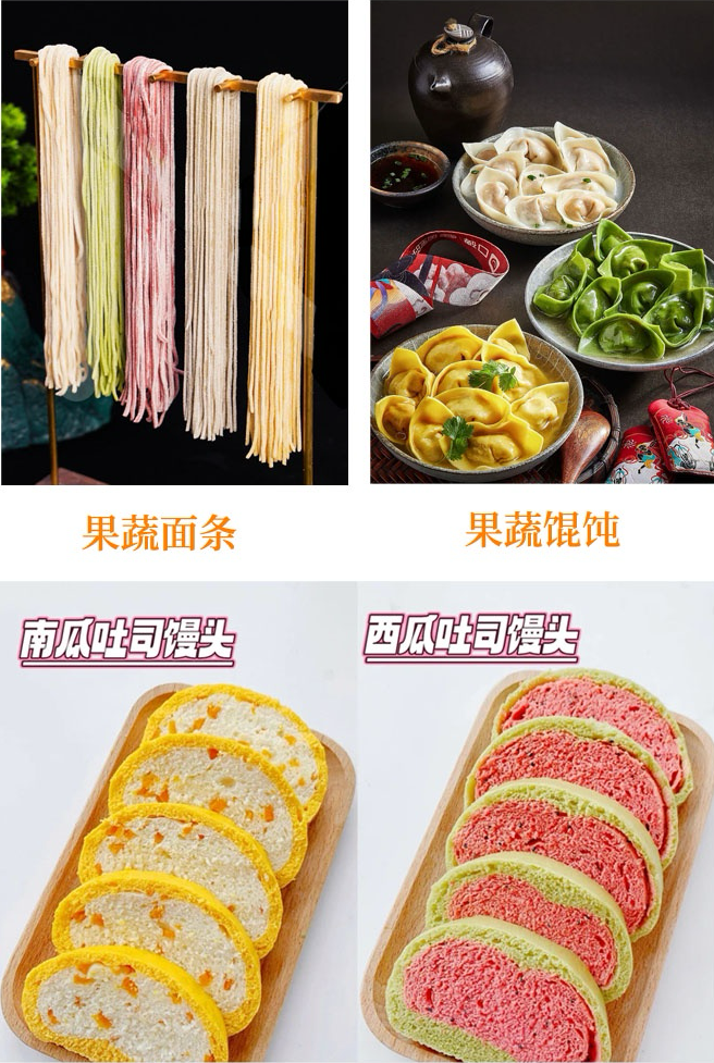 别说,有了蔬果汁的加持,普通的面食瞬间变华丽,别说小孩,大人都犯馋~