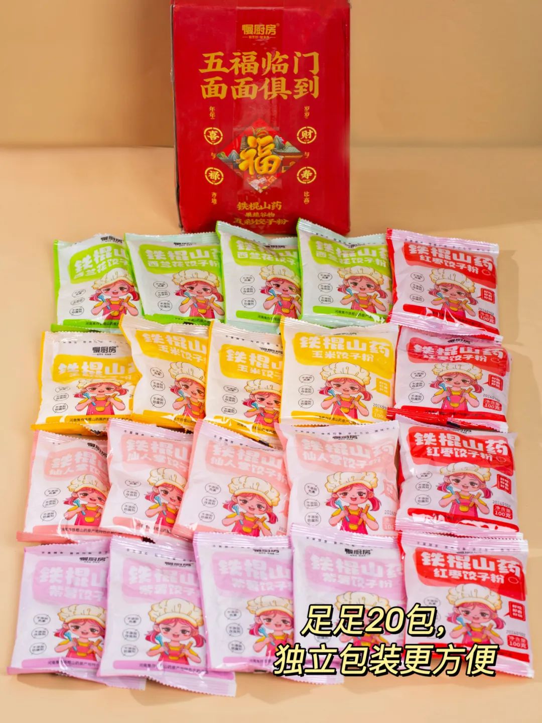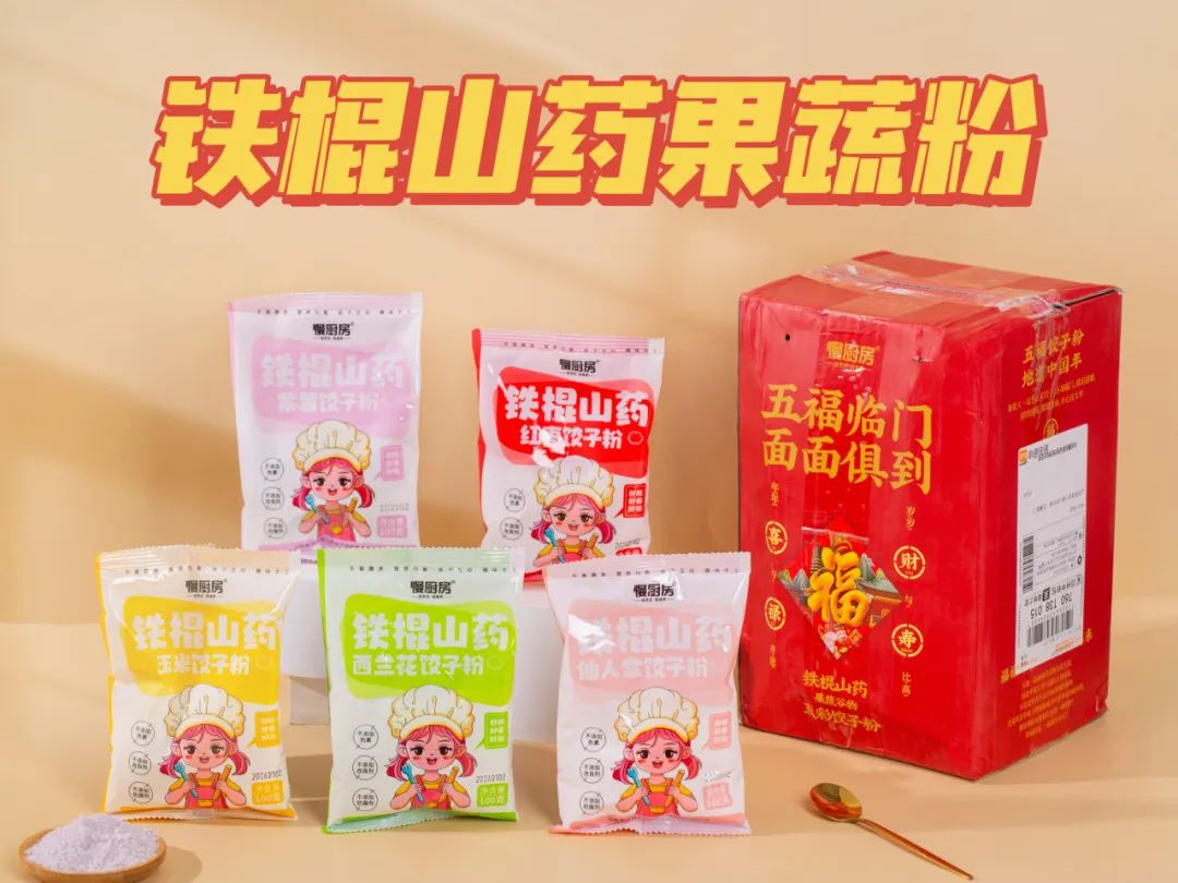 比如这款「慢厨房铁棍山药五彩饺子粉」,果蔬直接磨成粉,随取随用,小白都不会失手!