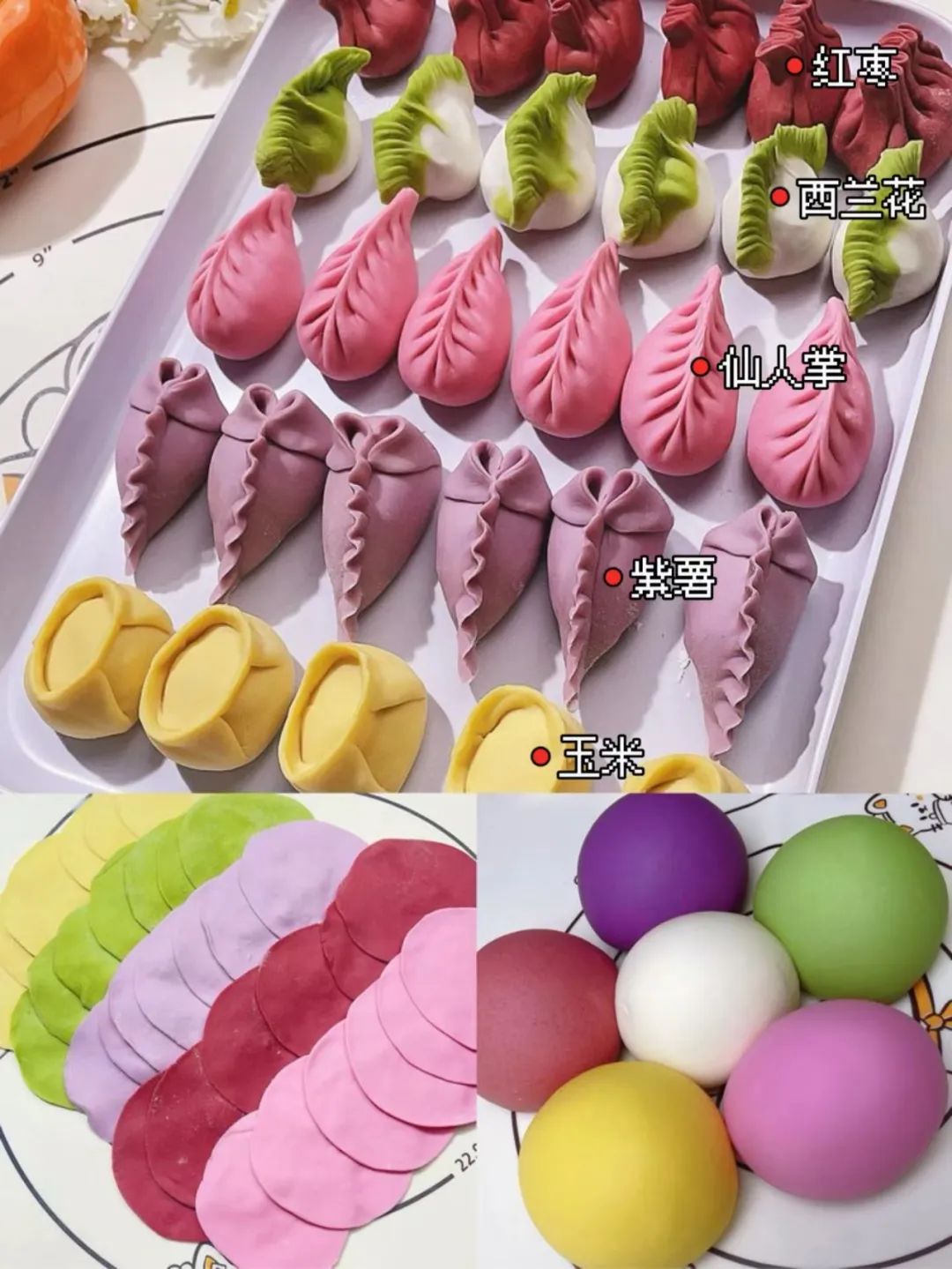 五彩包子用它包包子!一个个漂亮精致,端上桌都能轻松撑场!