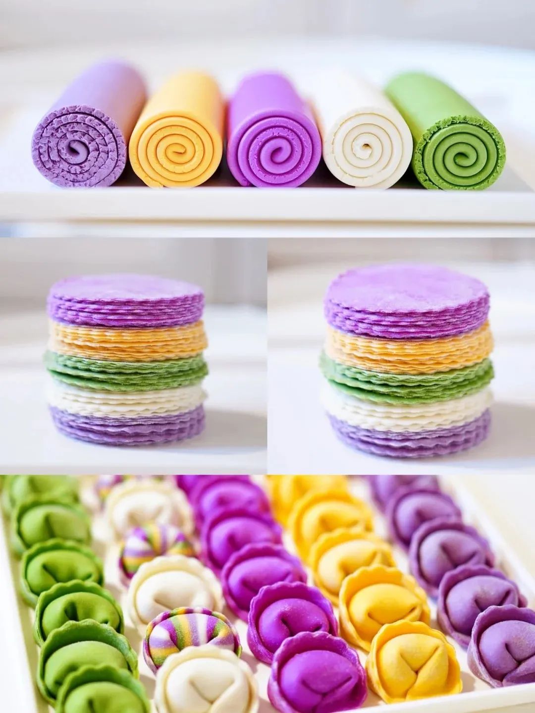 五颜六色的饺子、馒头、各种面点,大人小孩抢着吃!营养健康!必须得多囤点!