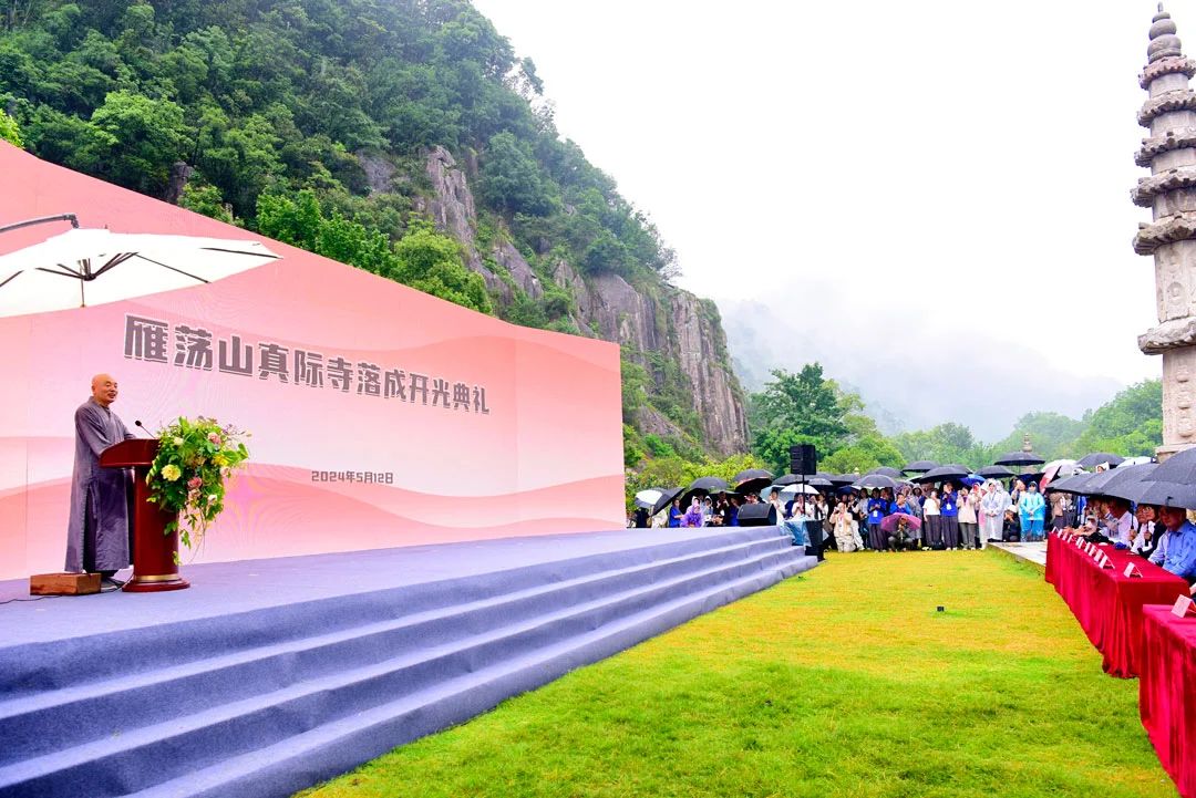 “同真际,等法性,不可量。真际寺的落成开光,让唐风宋韵的禅意净土在雁荡山间重现,令人耳目一新,既具有深厚的古韵内涵,又具有强烈的时代感。今天值此善妙因缘际会,让我们共同见证雁荡山真际寺落成暨佛像开光这一殊胜的时刻。”