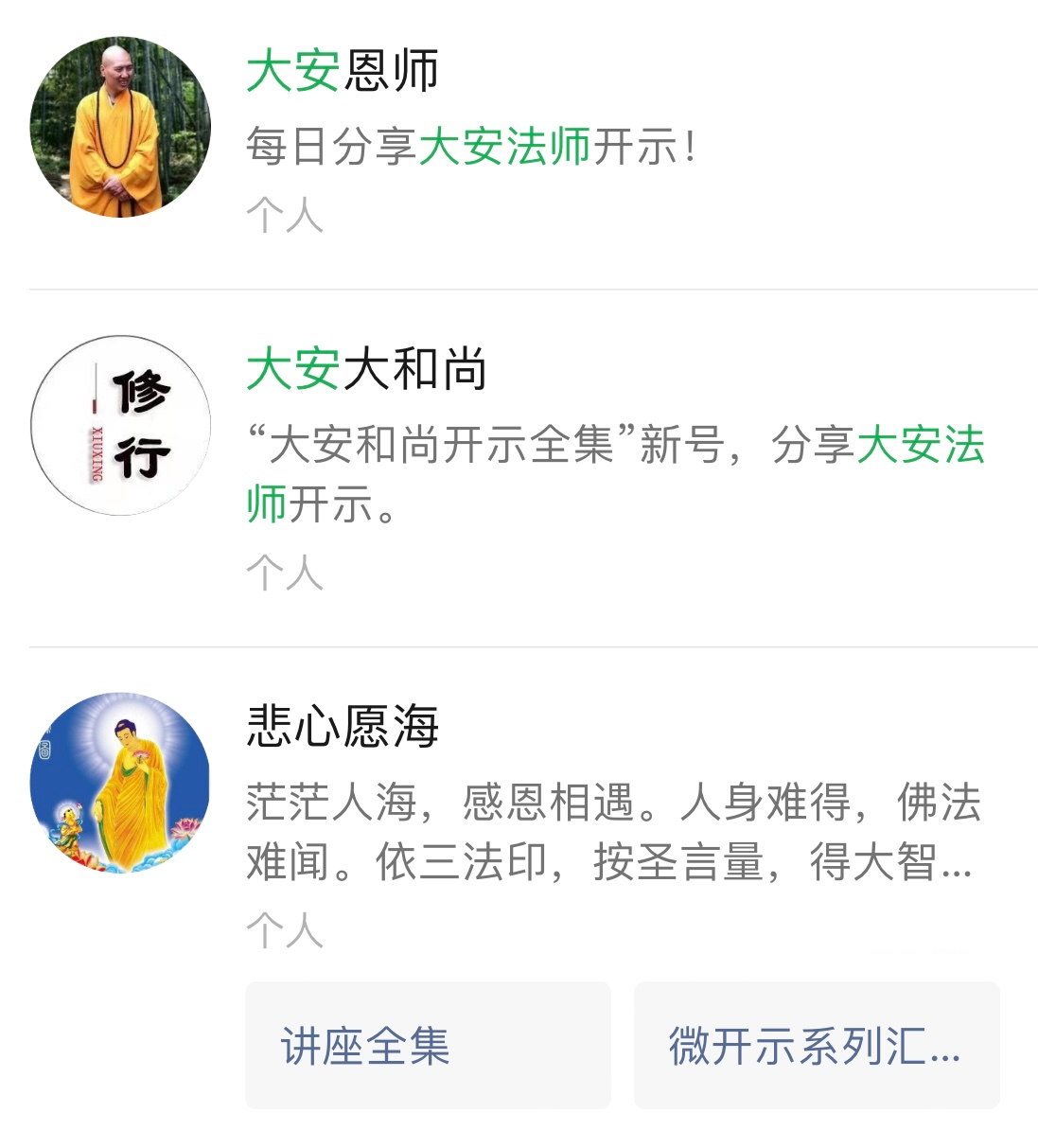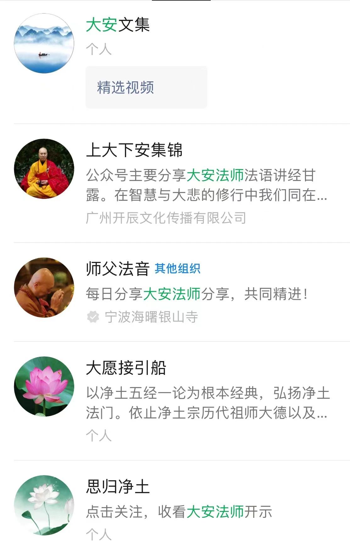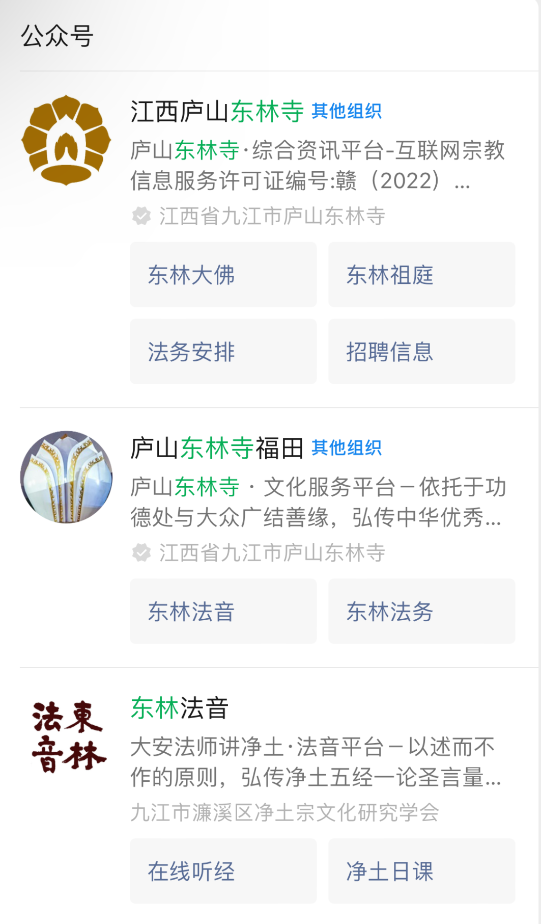 2.本寺官方微信公众号有三个,名称分别为“江西庐山东林寺”“东林法音”“庐山东林寺福田”,其它均非本寺官方授权,也不是大安法师本人。