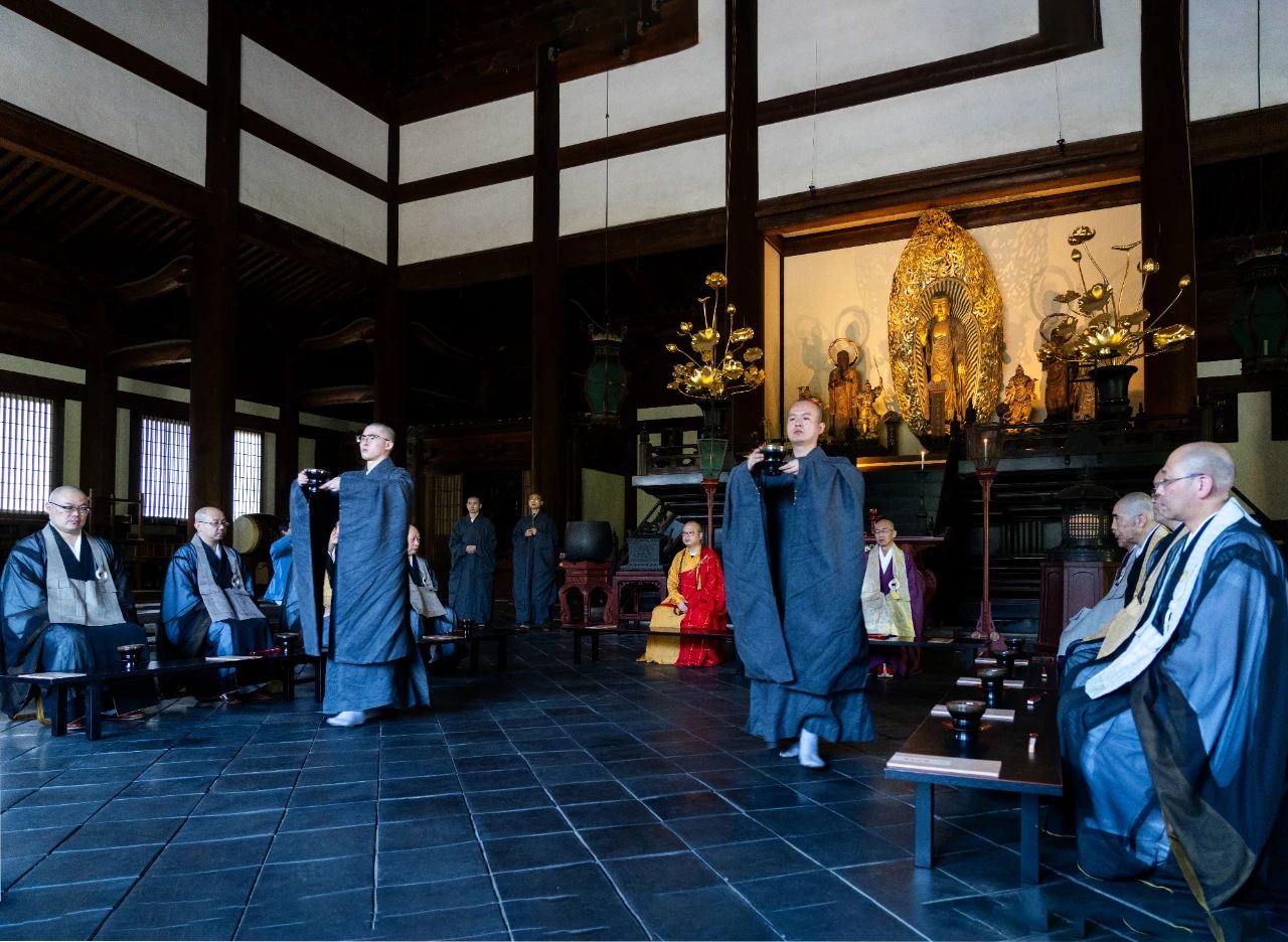 茶宴结束后,双方共同在东福寺法堂供奉的径山无准师范禅师牌位前,举行诵经回向。
