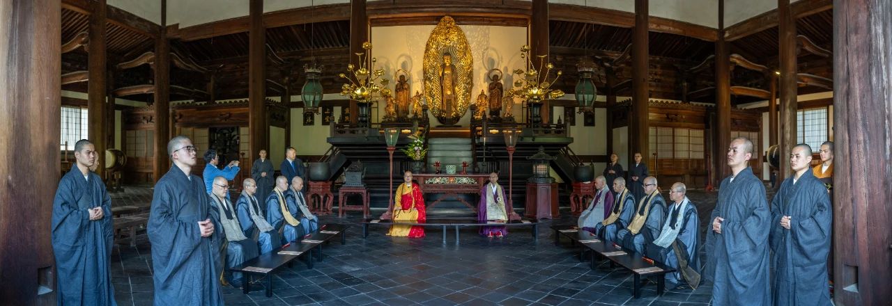 此次“径山茶宴”交流在东福寺毗卢宝殿(法堂)举行,东福寺派管长原田融道以及宗派十余座重要寺院住持出席了本次茶宴。