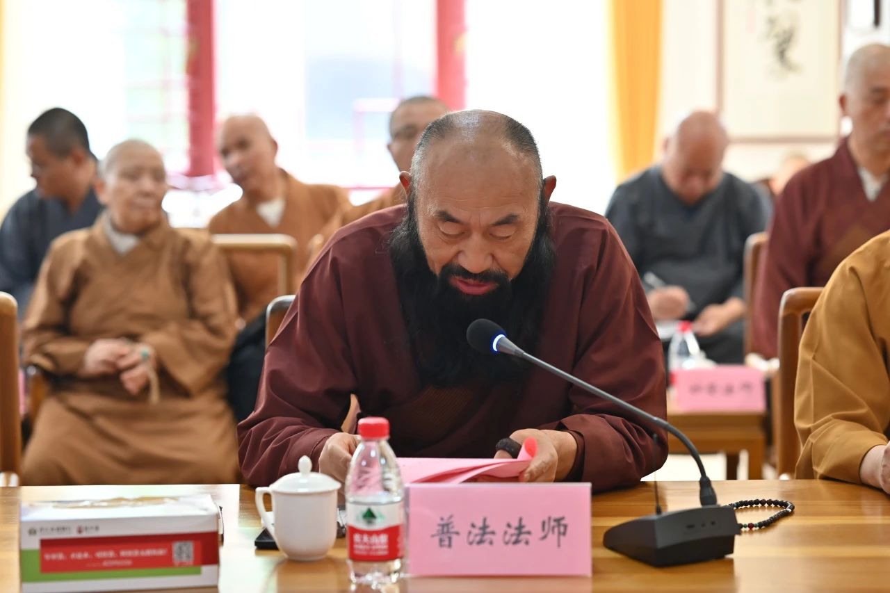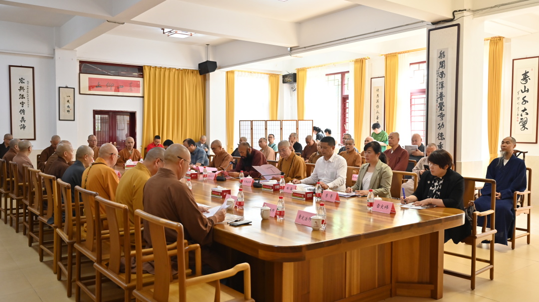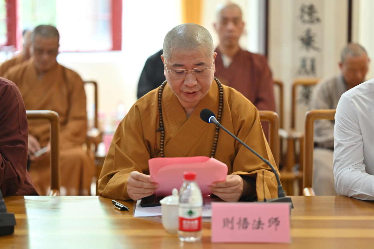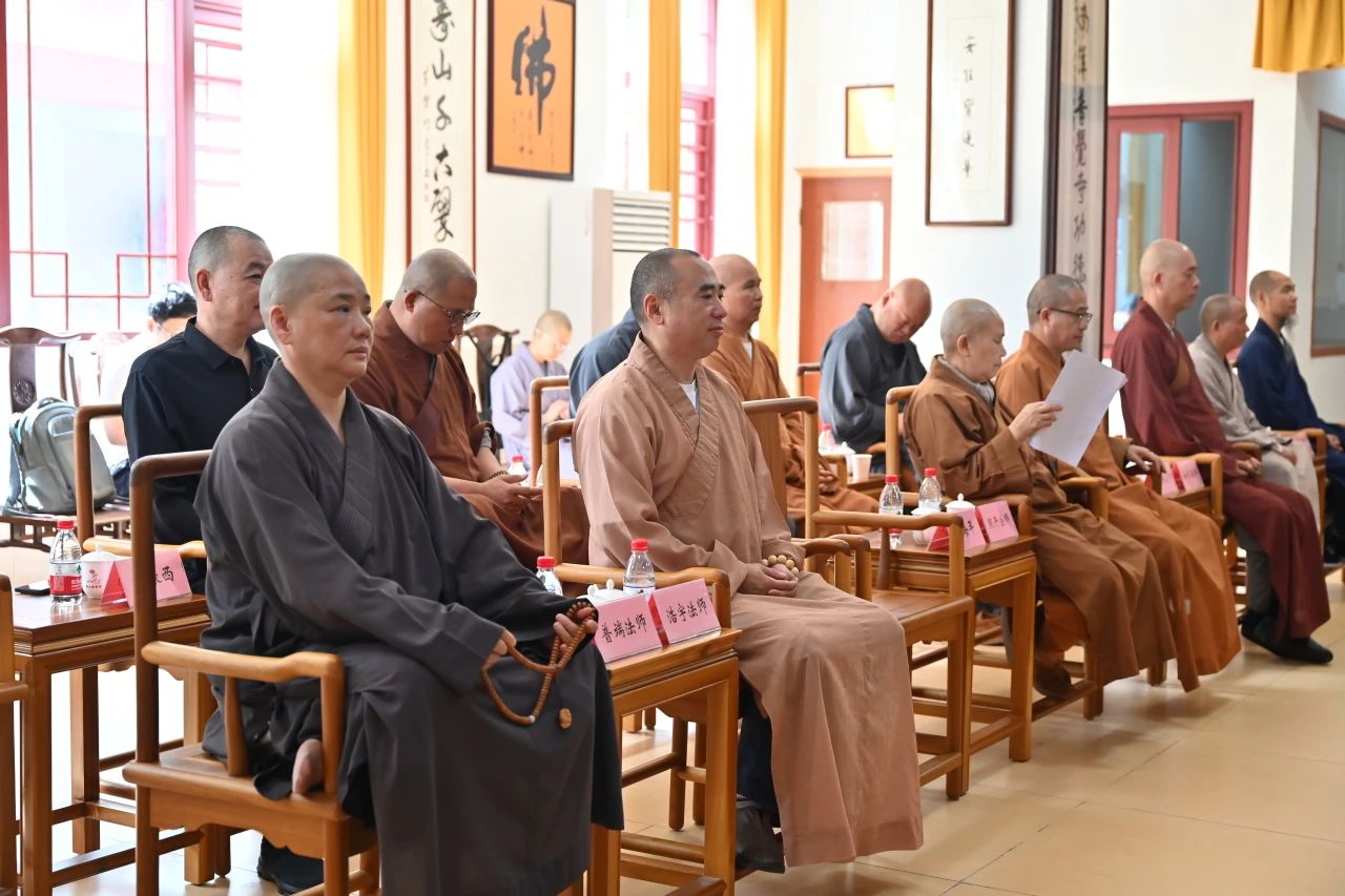 省委统战部、省民族宗教厅相关处室负责人在会上传达深化佛教商业化治理和从严治教相关文件精神以及省委统战部、省民族宗教厅关于宗教活动场所管理五方机制相关精神,则悟法师宣读《关于学习宣传贯彻爱国主义教育法 传承弘扬爱国主义精神的共同倡议》。