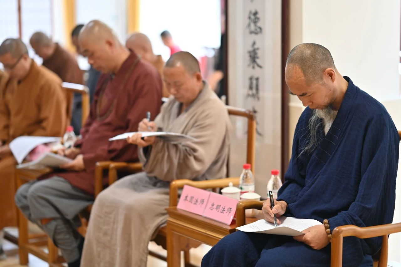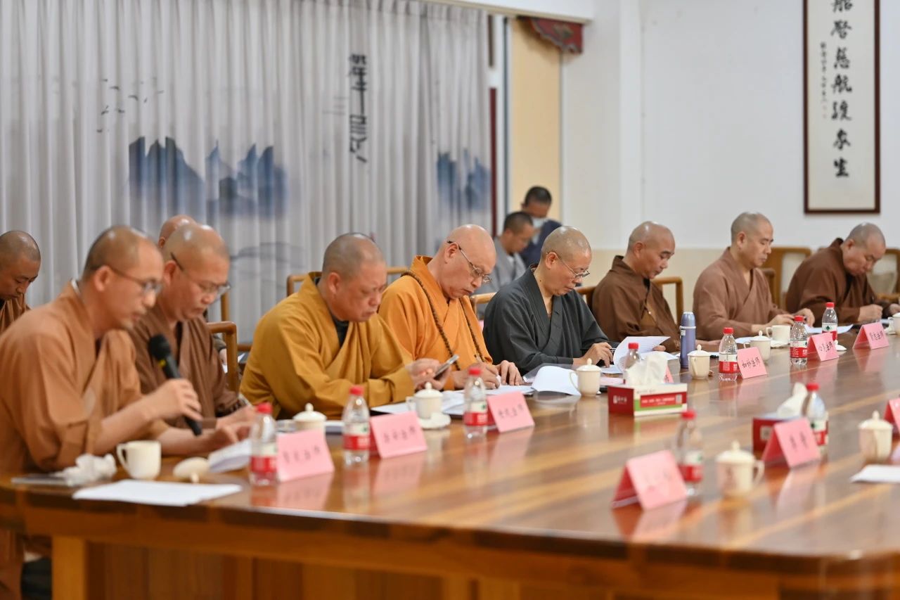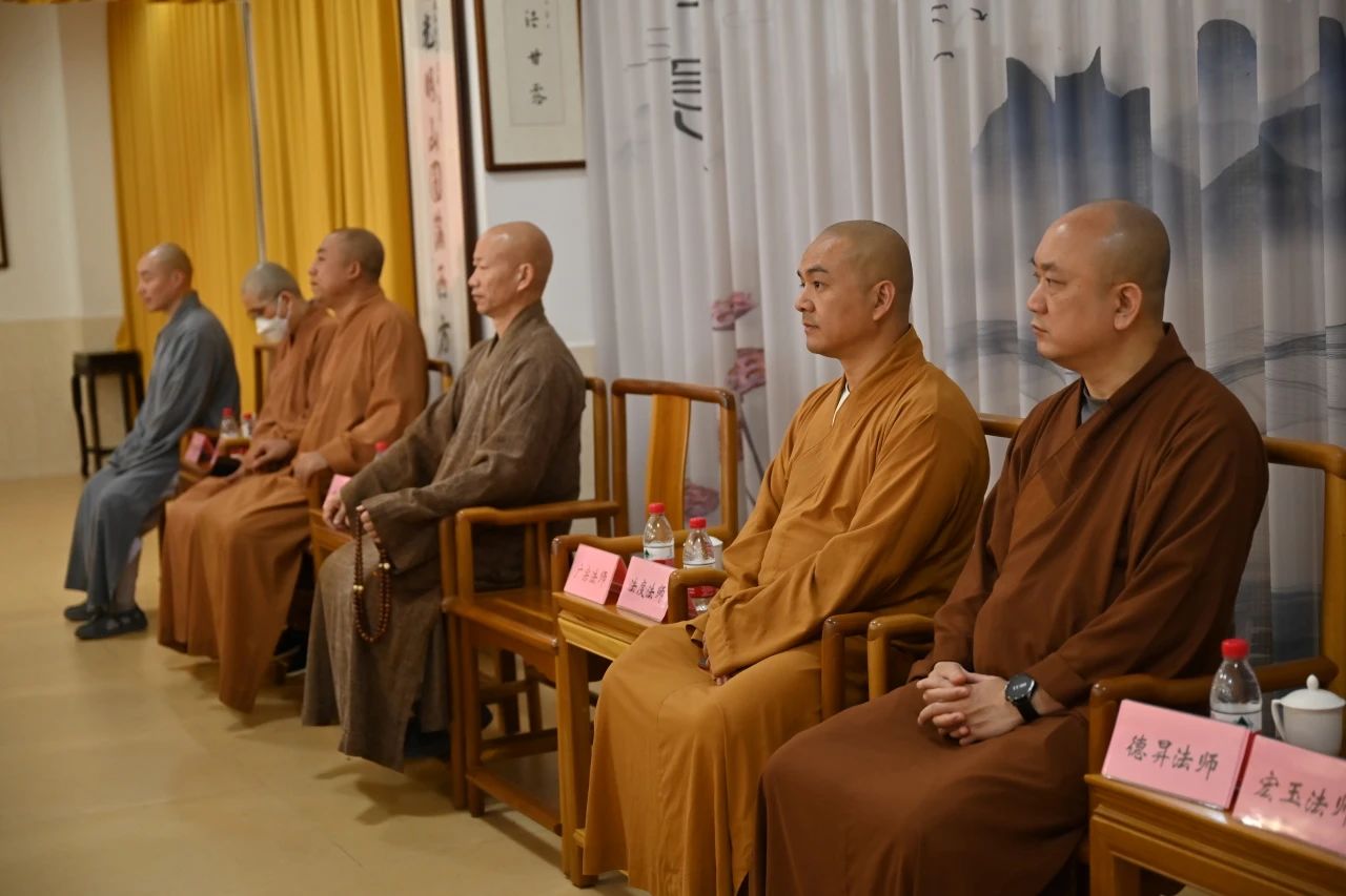 省委统战部、省民族宗教厅相关处室负责人在会上传达深化佛教商业化治理和从严治教相关文件精神以及省委统战部、省民族宗教厅关于宗教活动场所管理五方机制相关精神,则悟法师宣读《关于学习宣传贯彻爱国主义教育法 传承弘扬爱国主义精神的共同倡议》。