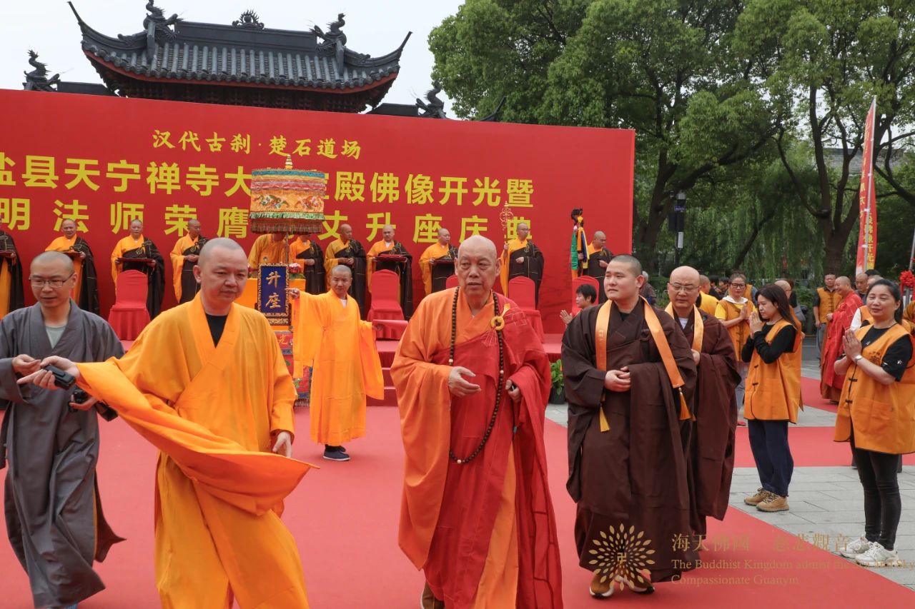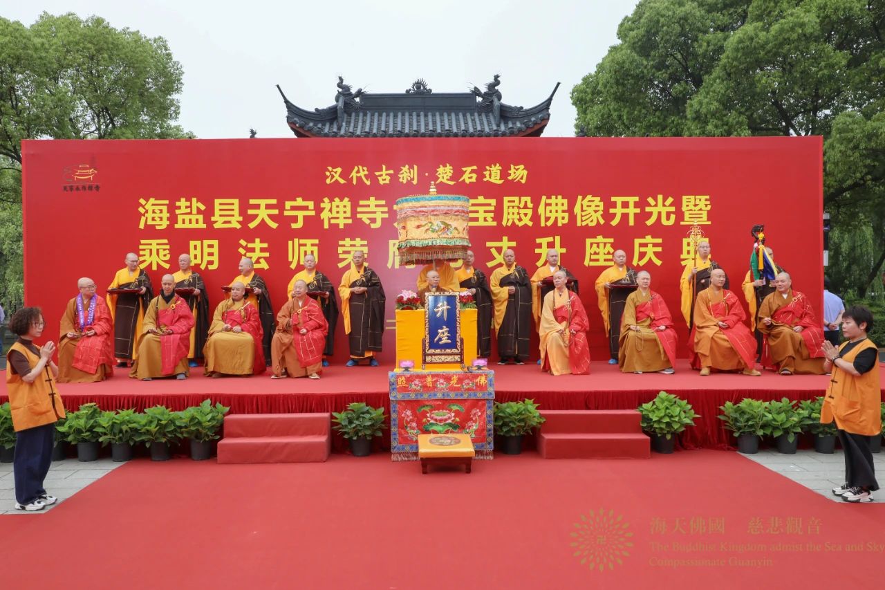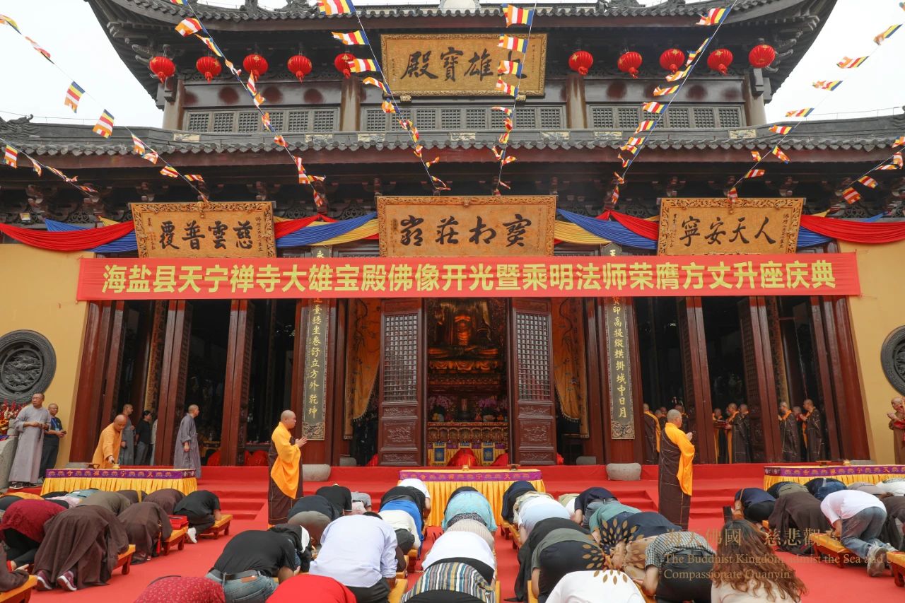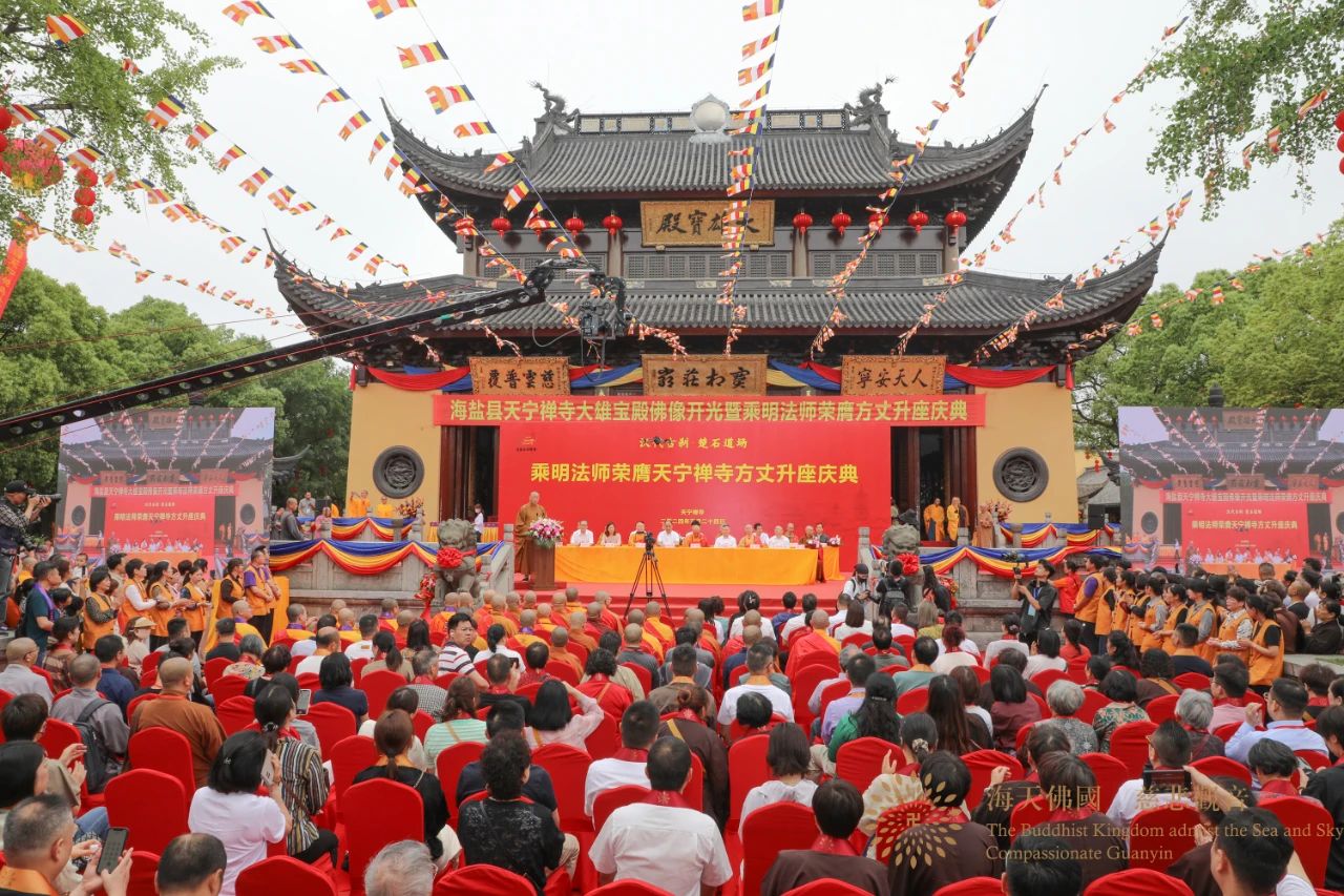 会长道慈大和尚一行出席浙江海盐天宁禅寺大雄宝殿佛像开光暨乘明法师荣膺方丈升座庆典