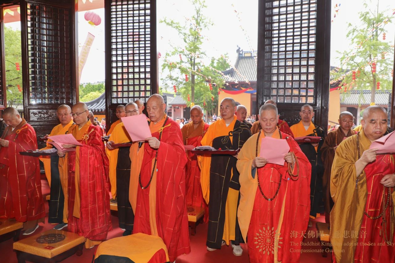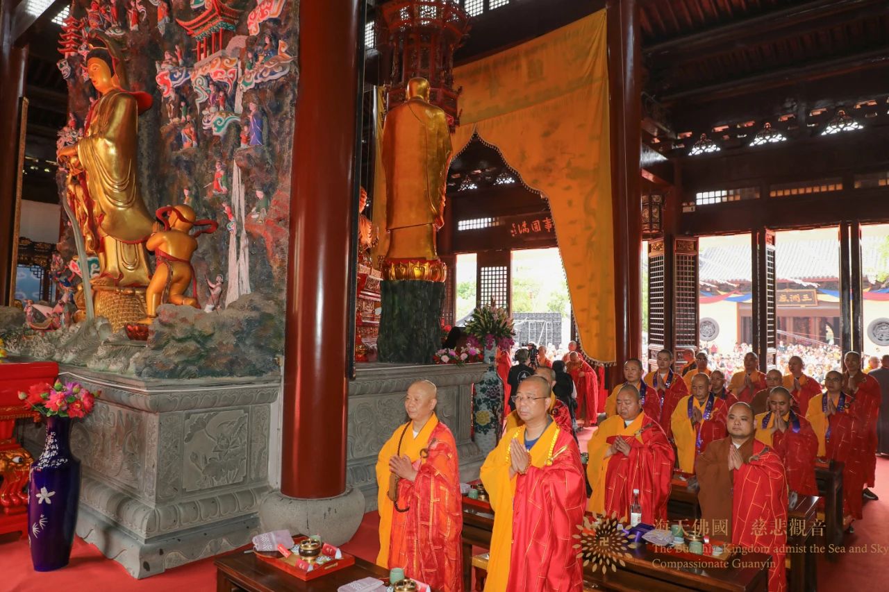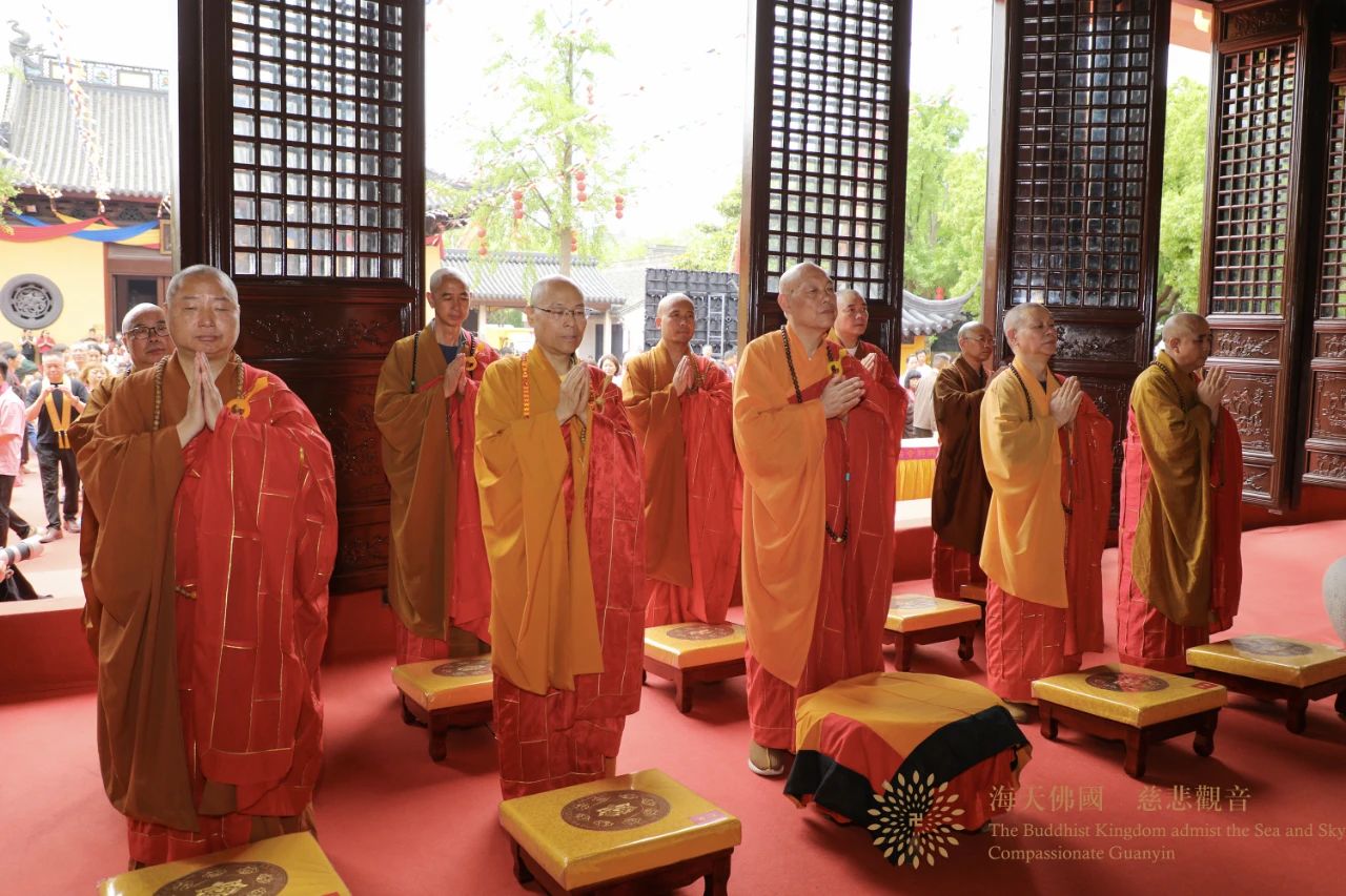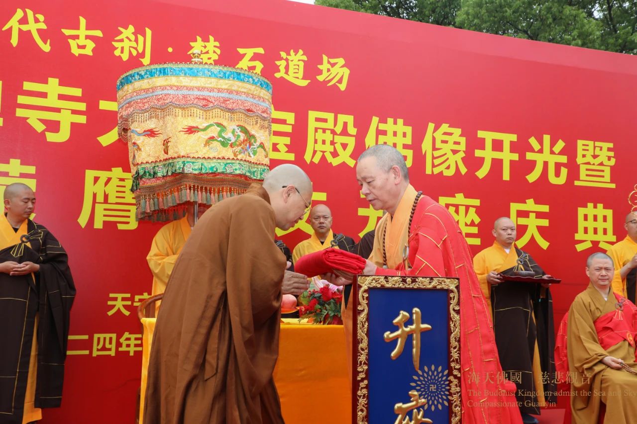 会长道慈大和尚一行出席浙江海盐天宁禅寺大雄宝殿佛像开光暨乘明法师荣膺方丈升座庆典
