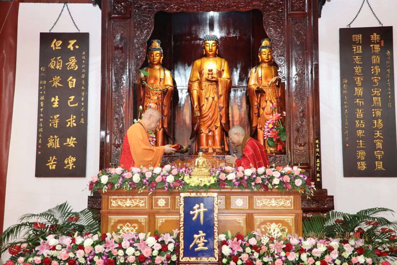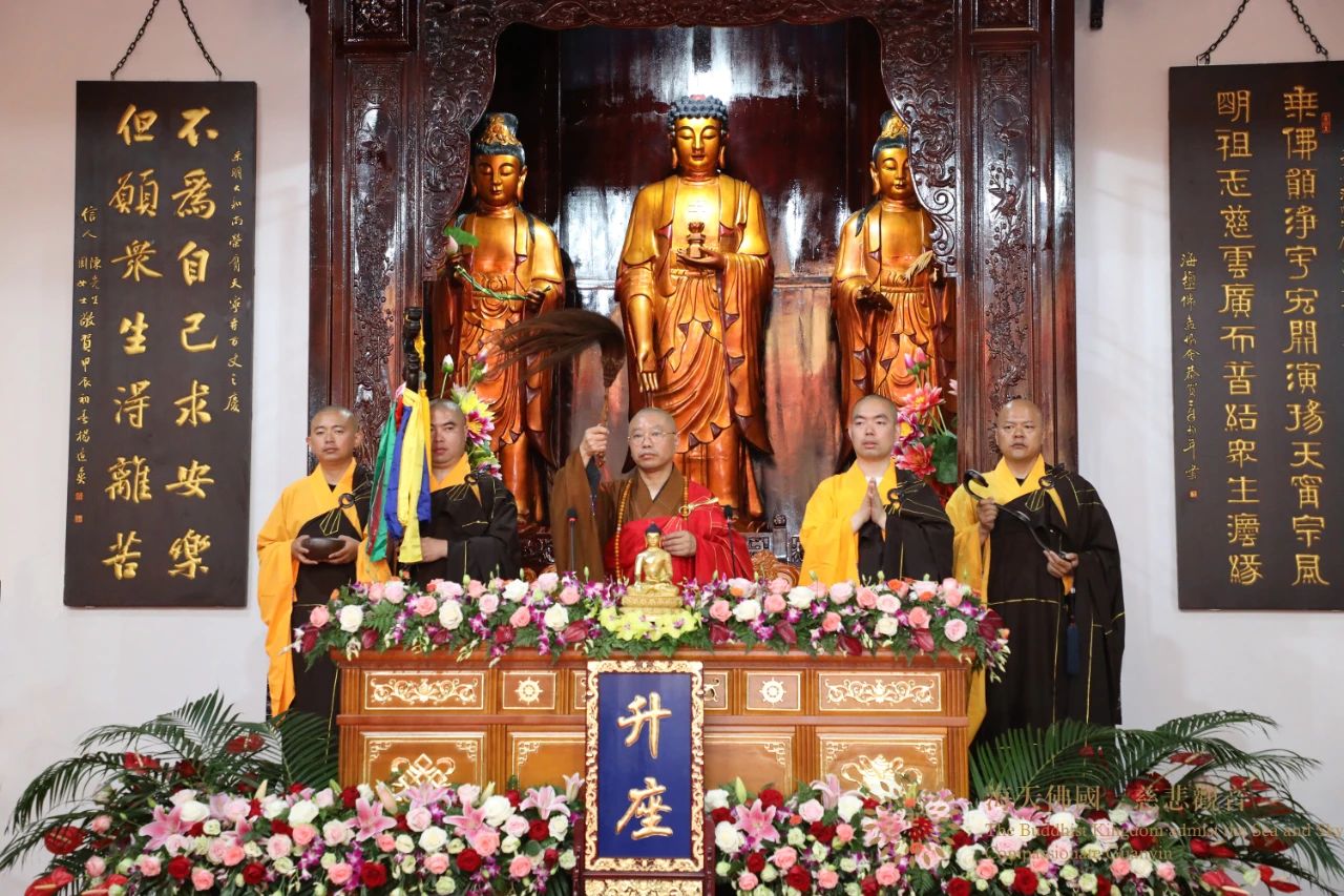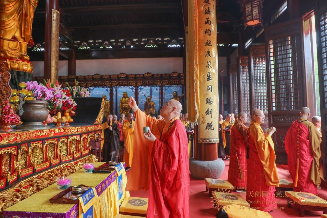 天宁禅寺作为浙北地区颇具影响的佛教道场,始终高举爱国爱教的伟大旗帜,秉承佛教的优良传统,践行“人间佛教”思想,积极投身社会公益事业,在实现人间净土、利乐有情的征途上不断迈出坚实可喜的步伐。此次庆典,严格按照中国佛教协会《关于规范升座、开光等佛事活动的通知》要求,如法如律,庄严威仪。