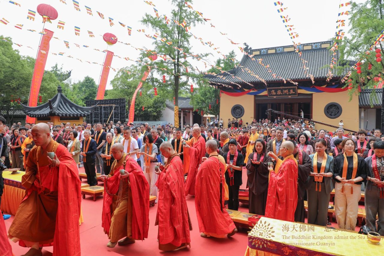 2024年5月24日(甲辰年四月十七),恭逢盛世,万象更新。浙江海盐天宁禅寺大雄宝殿佛像开光暨乘明法师荣膺方丈升座庆典。中国佛教协会副会长、普陀山佛教协会会长、中国佛学院普陀山学院院长、观音法界管理中心主任、普济禅寺方丈道慈大和尚,普陀山佛教协会副会长、宝陀讲寺监院惟航法师一行应邀出席。各级领导、诸山长老、社会贤达云集福地,恭贺随喜。四众弟子代表前往观礼,共襄盛会,同沐佛恩。
