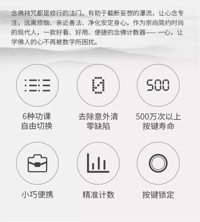 今天我们给大家推荐的这款计数器,与传统的念佛计数器不同,它是一款将智能硬件与互联网技术相结合的新型念佛计数器,我们希望通过对智能科技善用,来辅助大家更好的修行,念念相应,因缘和合。