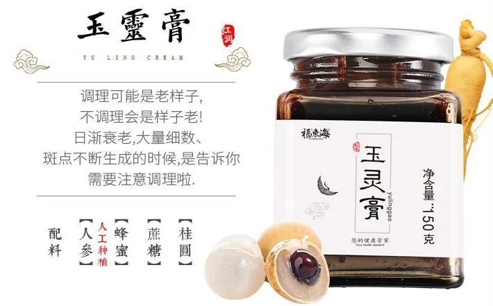 女人主血气,常吃桂园的女人,久而久之脸色红润、身材丰满,是女人补方的重要搭配,用来制作玉灵膏的原材料再适合不过。 为增强口感和功效,这款玉灵膏还添加了蜂蜜和蔗糖,蜂蜜可以清热润燥,滋润身体。而蔗糖具有独特的功能,有利于产品品质的提高。