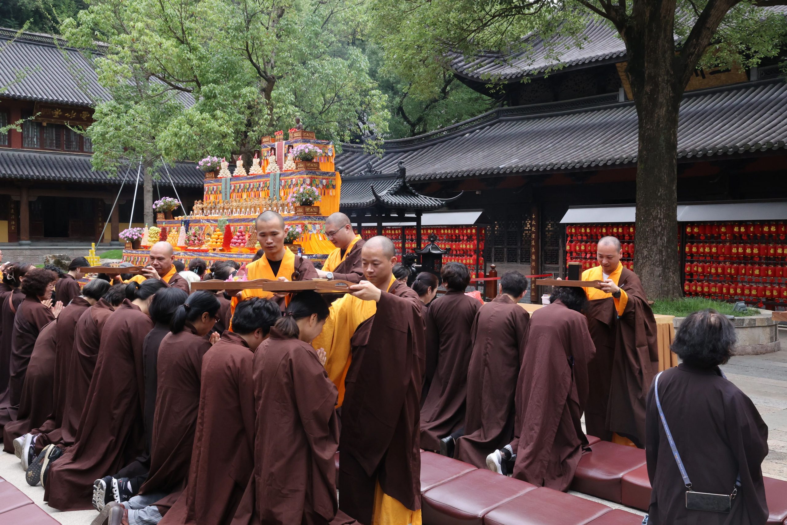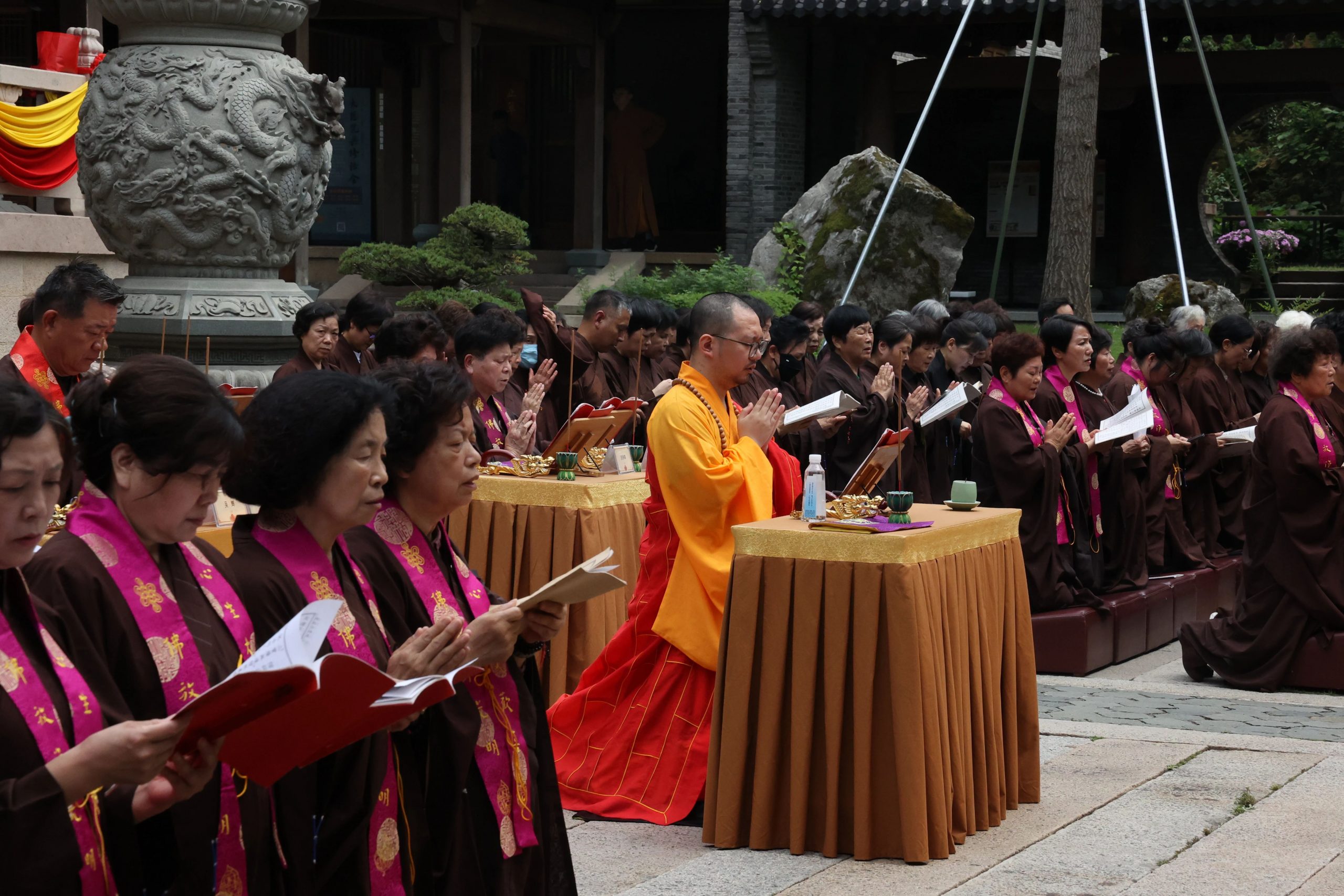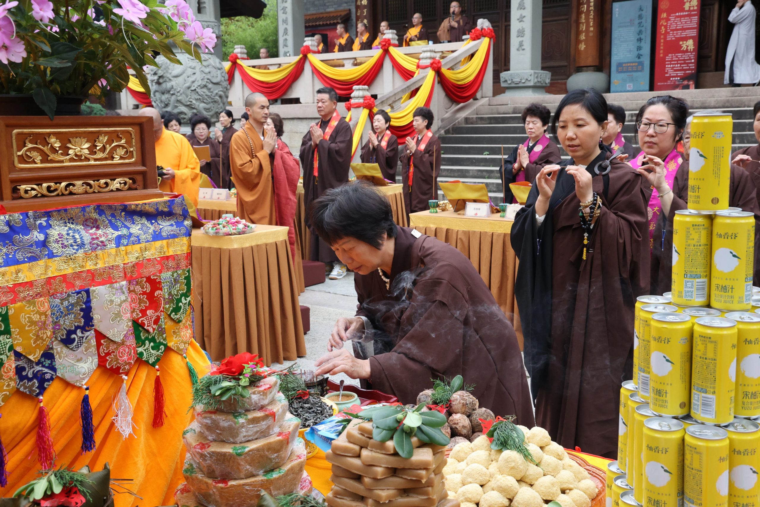 2024年6月4日(农历四月廿八日),佛光普照,因缘殊胜。为感恩诸佛菩萨、龙天护法护持华严法会,上午八时,头陀寺供佛斋天祈福法会在大雄宝殿广场隆重举行。