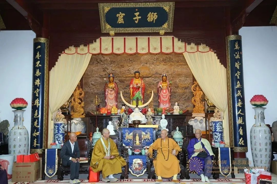2024年6月26日,日本中国观音灵场会普陀山纪念朝拜三十周年交流活动在普济禅寺圆满举行。日本中国观音灵场会会长小林畅善长老,顾问坪井全广长老、米田良中长老一行来山参访,普陀山佛教协会会长、普济禅寺方丈道慈法师接待了参访团一行,双方进行了友好交流。