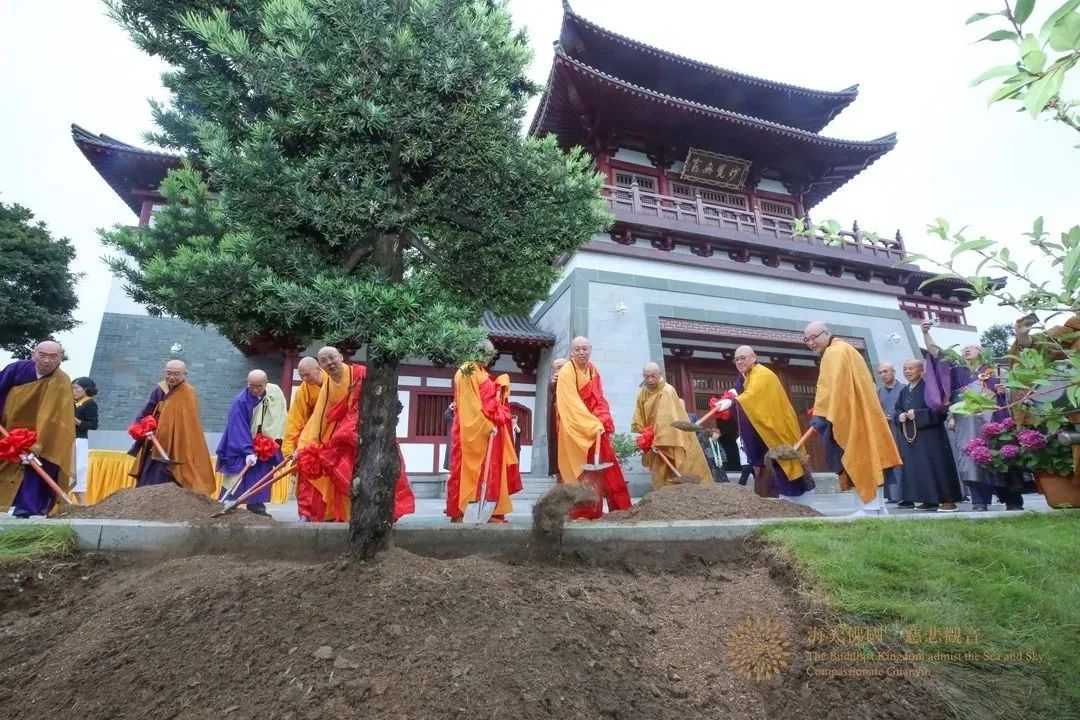 道慈法师和佛协领导班子与参访团共同在普陀山佛教博物馆参加了纪念植树活动,同植友谊树,共寄和平愿。