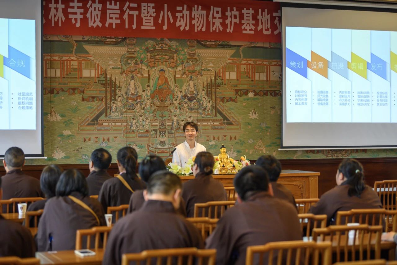 24日上午,东林寺首座德凯法师在专场交流会上做了精彩的开示:一切众生皆是过去父母眷属、未来诸佛,对待它们要持“平等、慈悲、包容、共生”的态度。不要只专注人天福报和有漏慈善,要发菩提心,信愿念佛求生极乐世界。同时呼吁大家作为“护生”的中坚力量,率先戒杀吃素,减少违缘障碍,增上慈悲心。法师现场回答了大家关心的问题,鼓励大家为众生发菩提心,做好利生事业。随后短视频领域制作人宇峰老师为大家作了“宠物公益短视频制作”的技术分享,从策划、设备配置、拍摄、剪辑、发布、推广等方面详细讲解,希望各基地能够通过网络传递具有正能量的情绪价值、讲好动物故事和爱心人士救生护生的故事,让更多人关注、理解、支持流浪动物公益事业。