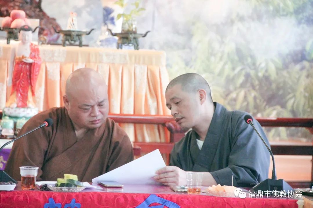 2021年7月12日上午9点,福鼎市佛教协会在金竺寺召开了今年度第一次理事会议。会议由副会长兼秘书长界崇法师主持。会议特邀深圳护生社韩思远等居士参加。