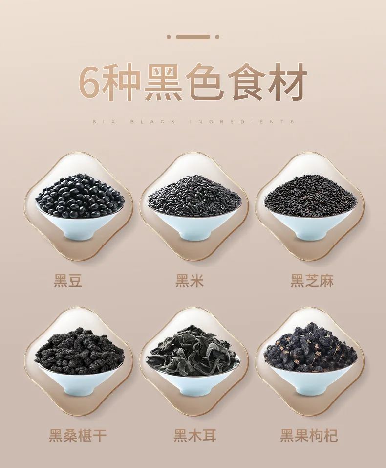 中医认为,头发干枯无光泽、脱发,表示肝肾不足,精血亏虚。以色补色,是《黄帝内经》中提出的养生理论,肾主黑色。黑八宝汇集6种黑色食材,提供升级“黑”能量。