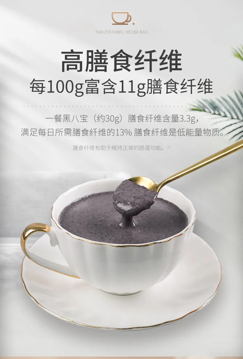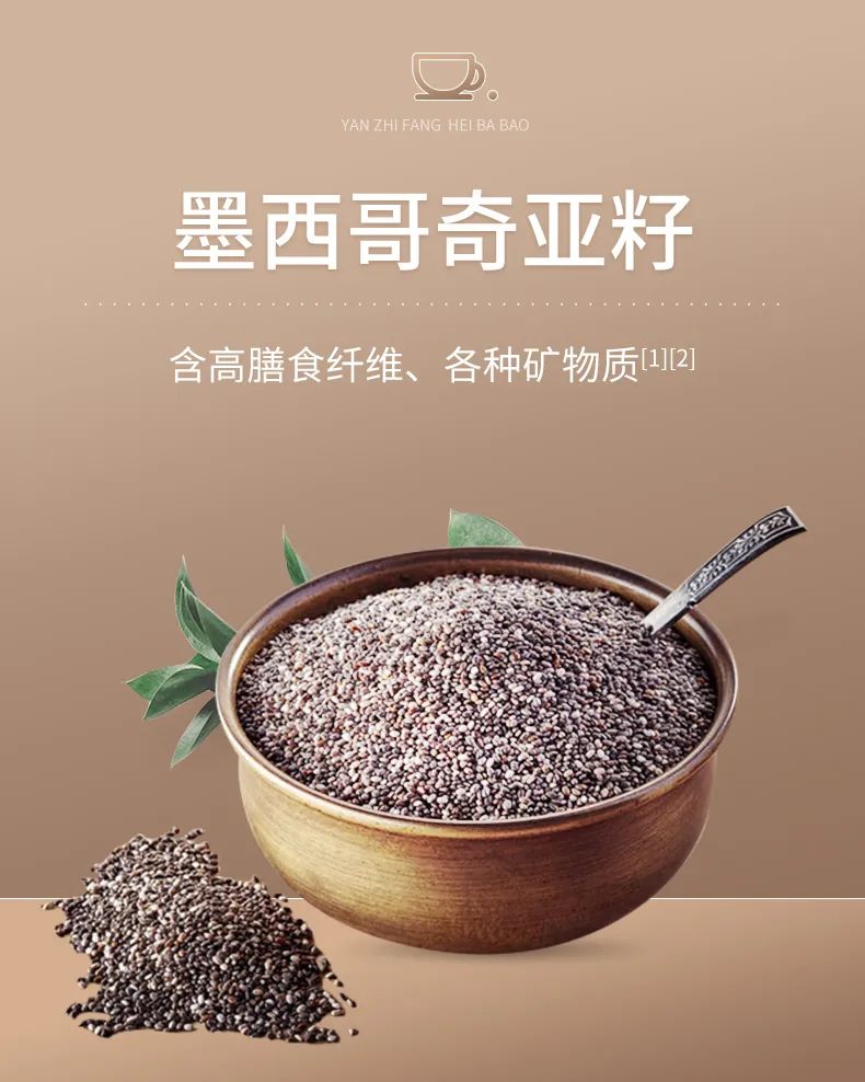 而今天的主角——黑八宝,在此基础上添加了黑米、黑枸杞、黑桑葚,还升级添加了覆盆子、芡实米还有墨西哥奇亚籽。高蛋白质、高膳食纤维,给人体补充所需营养的同时起到饱腹作用。养发又低脂饱腹~