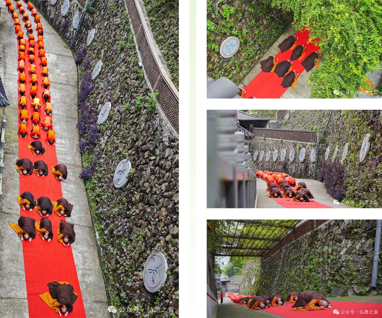 朝拜正式开始,大众怀着无比虔诚的心情,一步一拜,缓缓前行。从山门口出发,前往后山的如愿观音。在朝拜过程中,大众感受着大地的厚重,聆听着山间微风的低语。每一次俯身,每一次起身,感恩与祈愿交织在每一个人心中,每一步的修行都让大家体会到内心的宁静与祥和。虽然这段路程并不遥远,但对于每位参与者而言,却是一次心灵的长征。