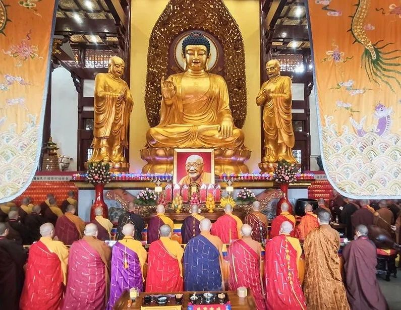 上午九时许,佛前供台高耸,具设种种上味佳肴,微妙大供,供养十方三世常住三宝,报恩禅寺方丈印顺大和尚带领众法师在大雄宝殿诵经祈福,众法师诵经声慈悲威严、磬声悦耳悠扬、法鼓声木鱼声浑厚有力,信众们收摄心神,法喜充满。