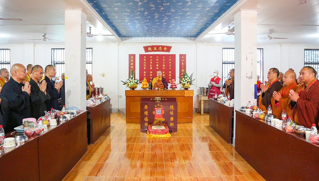 祈福仪式结束后,僧人整齐列队往斋堂应供,全程止语,偌大堂中唯有轻轻的碗筷起落声,宁静而庄严。