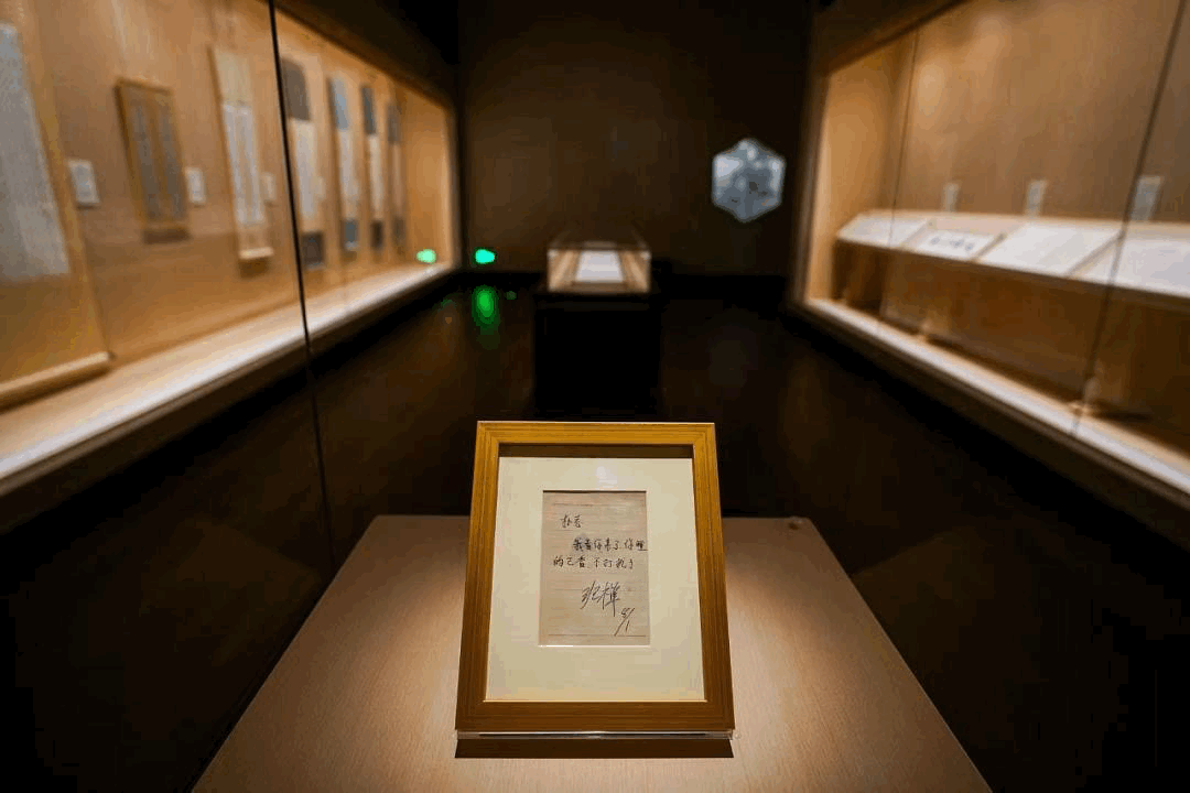 赵朴初先生是中国共产党的亲密朋友、杰出的爱国宗教领袖、著名的社会活动家,曾任中国人民政治协商会议第六、七、八、九届全国委员会副主席,中国民主促进会中央名誉主席,中国佛教协会会长。但他生活简朴,是“一不换住房,二不要警卫员,三不换汽车”的“三不”副主席。展厅还以捐赠遗物的家具、物品复原了北京南小栓胡同1号赵朴初故居的客厅与书房。客厅中,老旧沙发上依稀留着战友同志、国外友人的身影,简朴茶具仿佛记得高僧大德、后辈新学的言谈。“黄金纽带”世界和平,报国兴教薪火传承,历史见证着赵朴初终生的追求——“母兮吾土,报恩无有穷时”。书斋中,满架书籍小小书桌,赵朴初在此日日笔耕不辍,挥笔议国事,泼墨舒胸怀,建言献策慈被天下。只言片纸件件墨宝,见证着“一尘不染”的赵朴初无愧中国共产党的“好参谋、好帮手、好同事”。