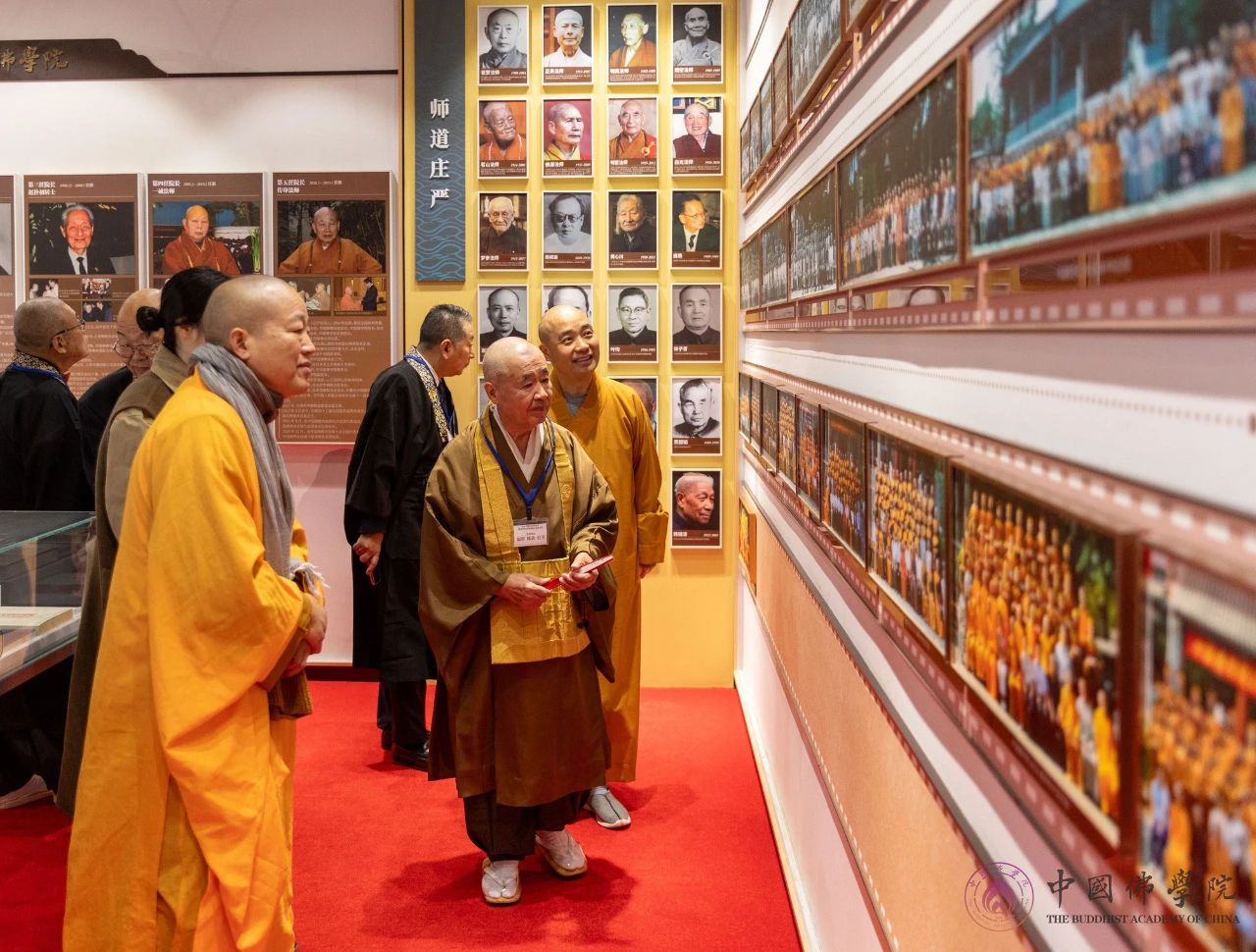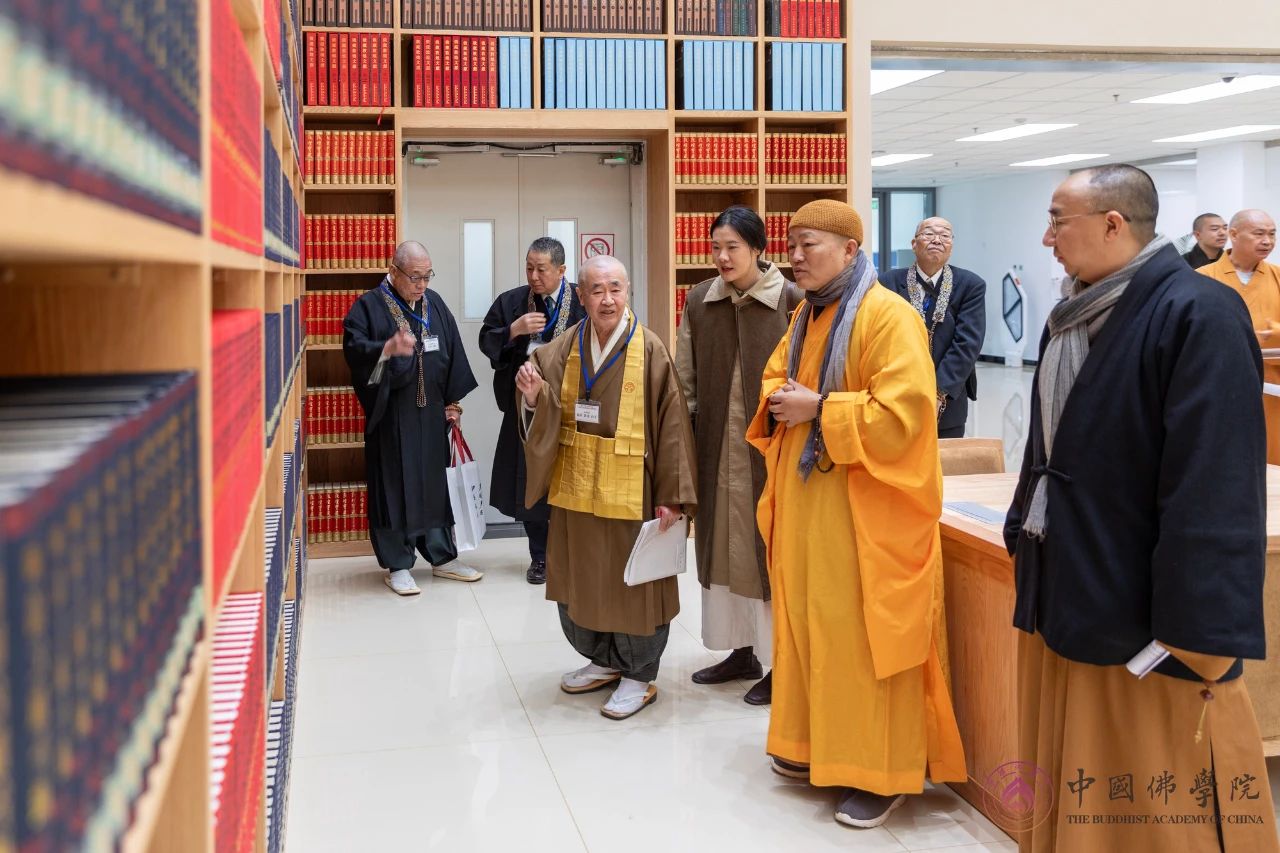 福原隆善长老一行在明海法师的陪同下,参观了我院校史馆、图书馆等校园设施。在校史馆,透过一张张照片,明海法师和福原隆善长老一同回顾了中日佛教界在僧才培养方面的互动交流。