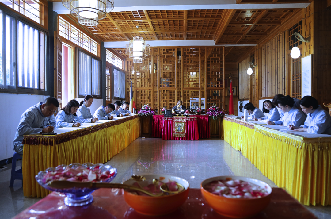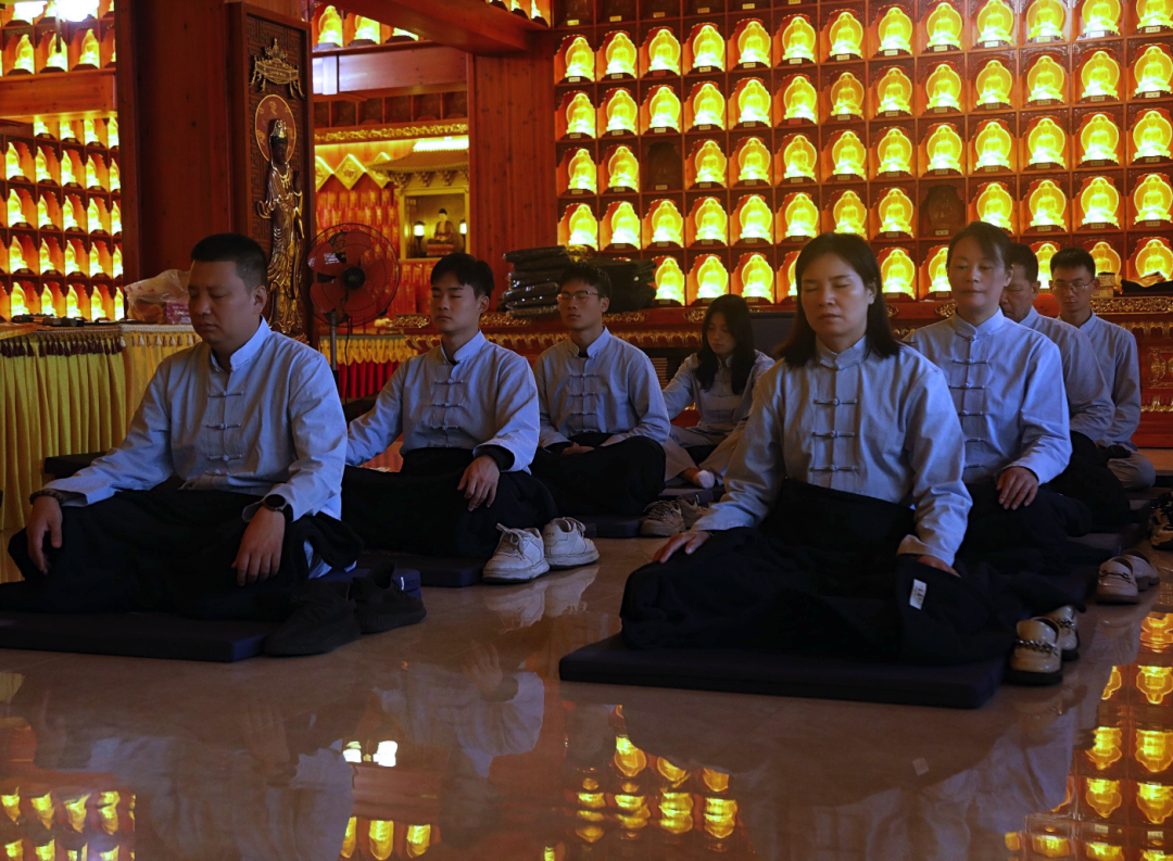 焚香静坐:禅修者们在静心禅坐中体验到了内心深处的宁静。