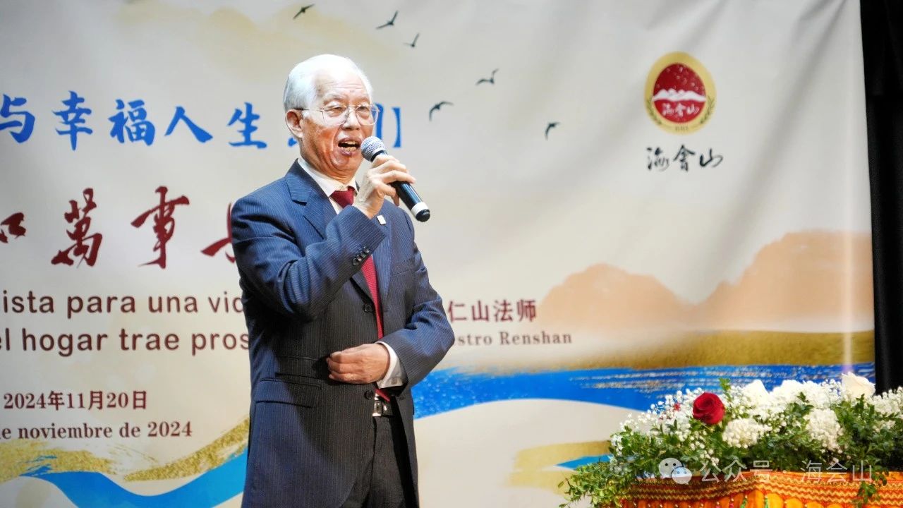 西班牙青田同乡会永久名誉会长倪晔敏先生在致辞中指出,佛教是中华优秀传统文化的重要组成部分,海会山在西班牙传播佛法,对促进华人社区团结和中西文化交流发挥了重要作用。他对此表示高度赞赏,并期待海会山在未来发挥更大的作用。