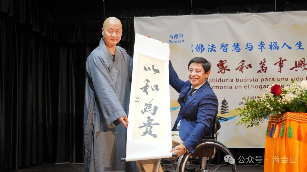 马德里议会主席Borja Fanjul Fernández-Pita在致辞中热烈欢迎法师一行,并高度赞扬了海会山在促进中西文化交流、推动社会和谐方面所作出的杰出贡献。他强调,佛教文化的智慧与包容在促进当地社会和谐发展中扮演着不可替代的角色,并期待海会山未来能继续作为中西友好交流的桥梁,为加深两国人民友谊贡献力量。