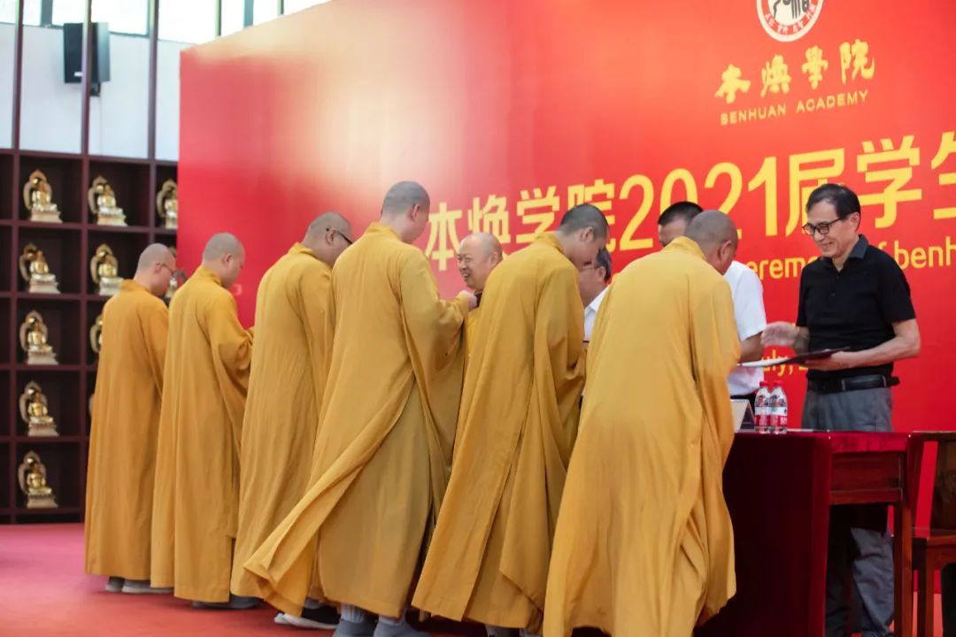 2021年7月15日上午,本焕学院在经堂举行2021届本科生毕业典礼。深圳市委统战部副部长、民宗局局长王子建,罗湖区委常委、统战部部长吴欢,深圳市委统战部(市民宗局)宗教一处处长江涌,罗湖区委统战部副部长、区民宗局局长刘亚峰,全国政协委员、中国佛教协会副会长、深圳弘法寺方丈、本焕学院院长印顺大和尚等领导嘉宾出席毕业典礼。典礼由院长助理、教务长顿普法师主持。