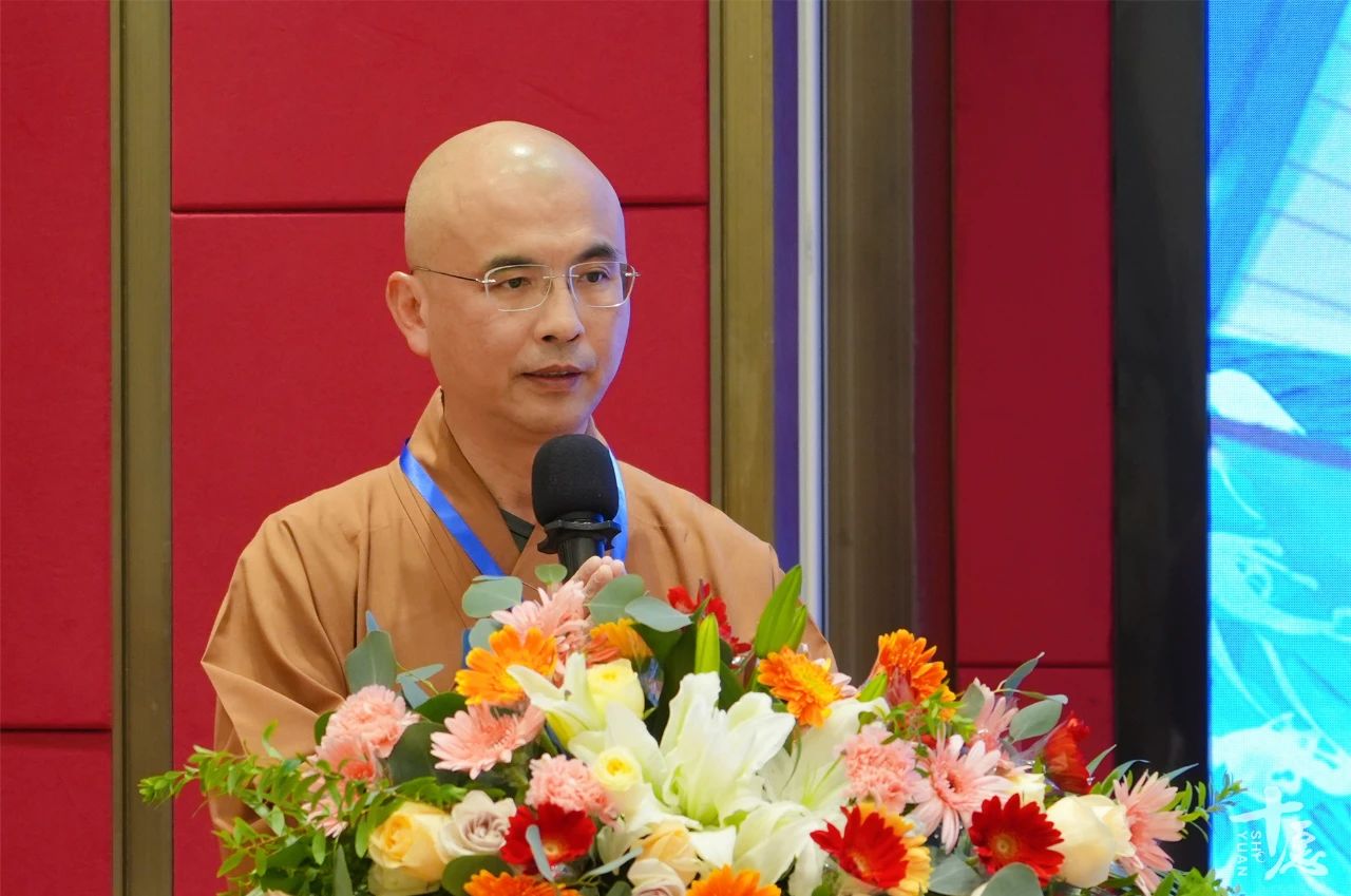 台湾中国佛教会常务理事、金门县佛教会理事长性海法师代表台湾中国佛教会致辞。性海法师表示,慈航法师为两岸佛教事业做出了卓越贡献,特别是在佛教青年教育方面开创了先河。他强调,慈航法师一生致力于佛教教育的现代化和僧伽青年的培养,推动了佛教文化的传承与创新,并期望佛教青年继承法师的精神,肩负起时代赋予的责任与使命。