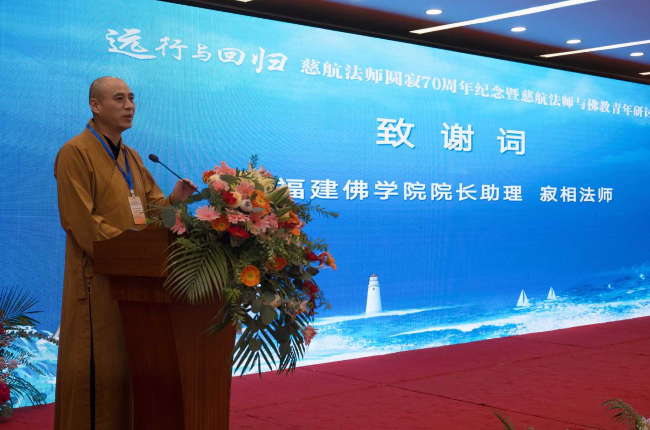 福建佛学院院长助理寂相法师在闭幕式上致谢词,他说:今天我们在此纪念慈航法师圆寂70周年,研讨他为佛教青年培养所做的巨大贡献,因缘殊胜、难得!今后,希望海峡两岸佛教界一起继承并弘扬慈航法师的思想与精神,进一步加强友好交流,发扬佛教的优良传统,庄严国土,利乐有情,为中华民族的伟大复兴和佛教的发展,作出我们应有的贡献!