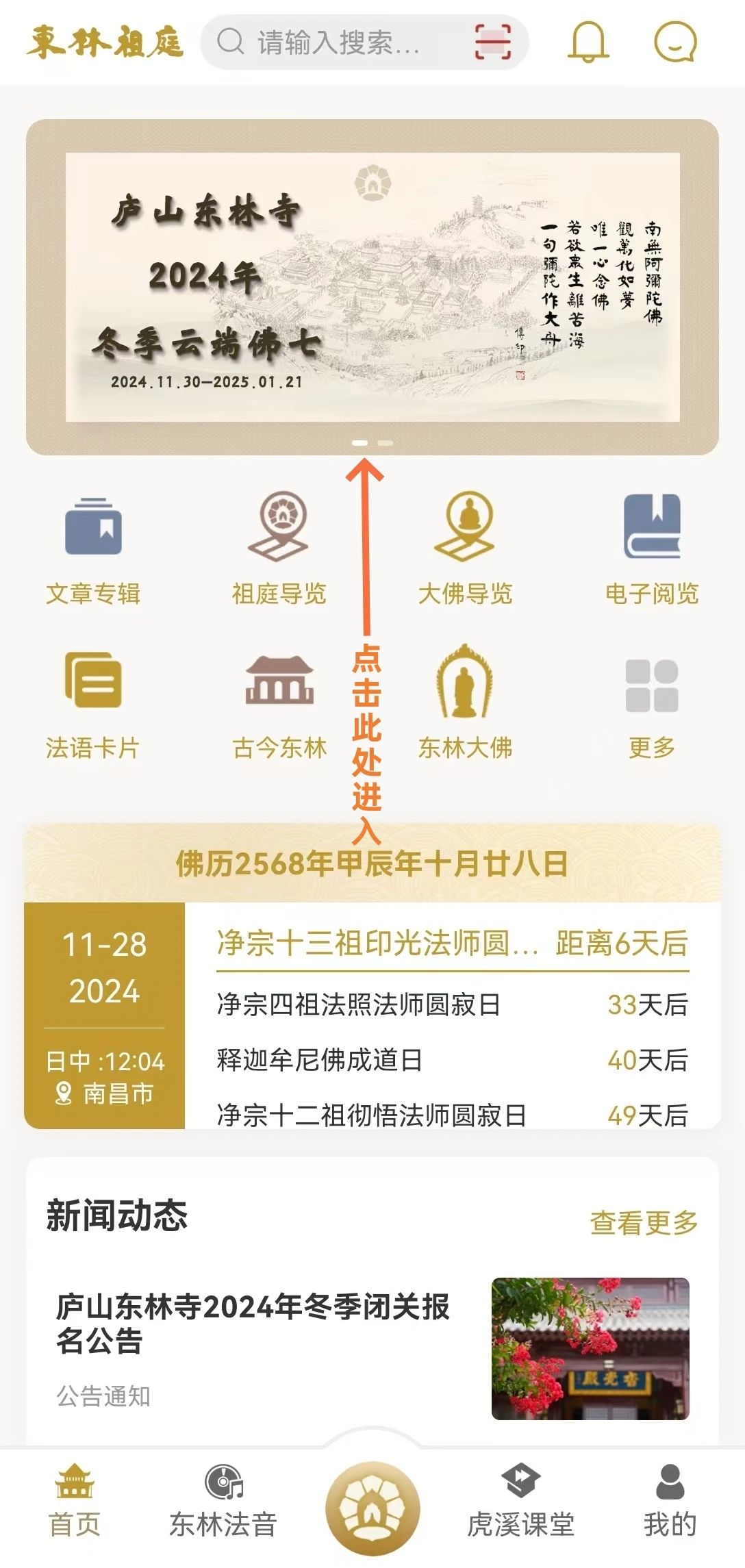 方法②从东林祖庭App首页直接进入云佛七界面。
