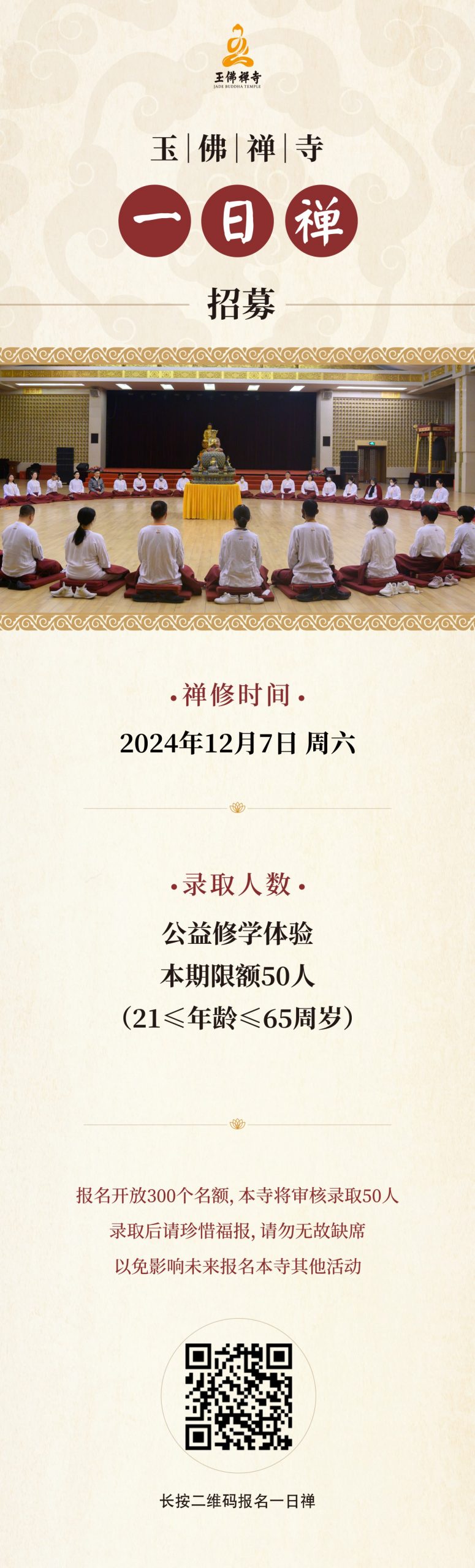 为令更多人有缘参与,2024年已参加过本寺一日禅活动的善信,报名后不会审核通过,请勿报名以免占据名额。