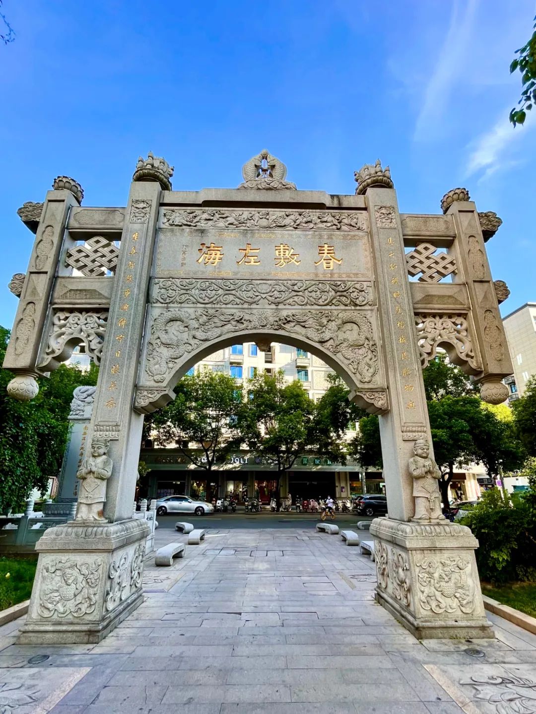 梁是中国南北朝时期的南朝第三个朝代,萧衍取代南齐称帝,定都建康,国号梁,因皇室姓萧,又称萧梁。“萧梁古刹”是讲福州开元寺的历史,而“春敷左海”是讲福州开元寺的位置,“左海”为福州的别称,意指海居于东,春敷指春天花木繁盛,寓意欣逢盛世,佛法重兴,慈悲光明护佑福州。