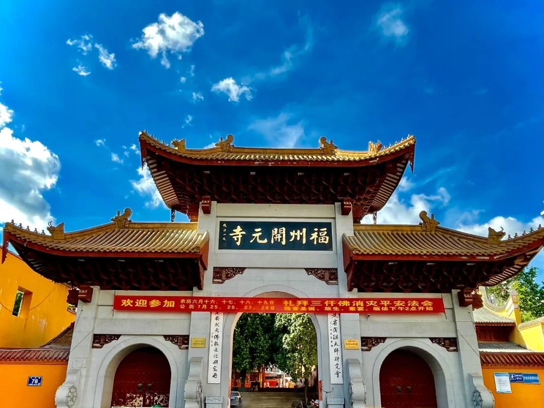 福州开元寺,位于福州市鼓楼区开元路,是福州现存最古老寺院,始建于南朝梁太清三年(549年),史称“萧梁古刹”、“古闽祖刹”,历史底蕴十分丰厚,以其悠久且著名的四大文化,即冶铸文化、海丝文化、医药文化、刻经文化闻名遐迩,一度成为全国十大名刹之一。寺中主要文物有:千年特大型铁佛,宋代石塔、石槽、石狮、石井,明代建筑灵源阁(药师殿),清代建筑铁佛殿。自唐代至今,为著名药师佛信仰道场。曾有印度、日本、朝鲜等入华高僧在此译经教学、请益驻锡,如日本真言宗创始人空海大师、天台宗寺门派创始人圆珍大师入唐求法时,都先后驻锡此地。宋代,福州开元寺刊刻了佛教全集——《毗卢大藏经》。如今,有毘卢藏经阁在寺内巍然耸立。