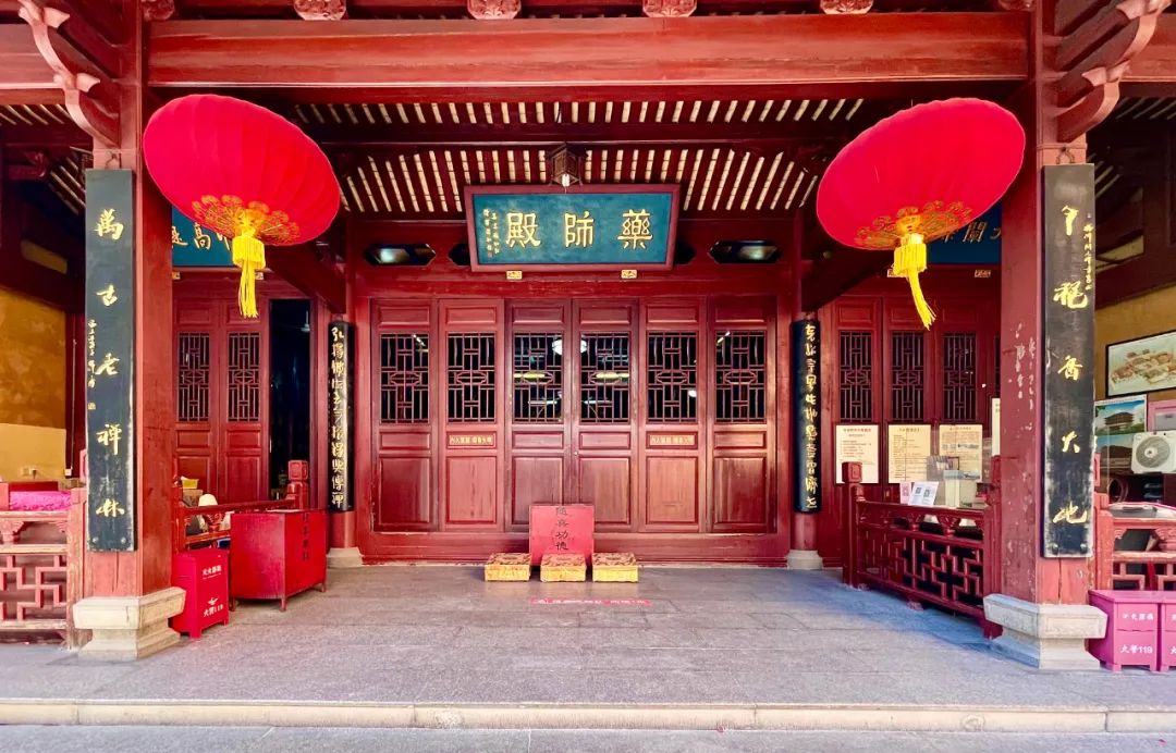 药师殿外楹联:“克绍宗风,此地悬壶曾济世;弘扬佛法,至今振锡与传禅。”