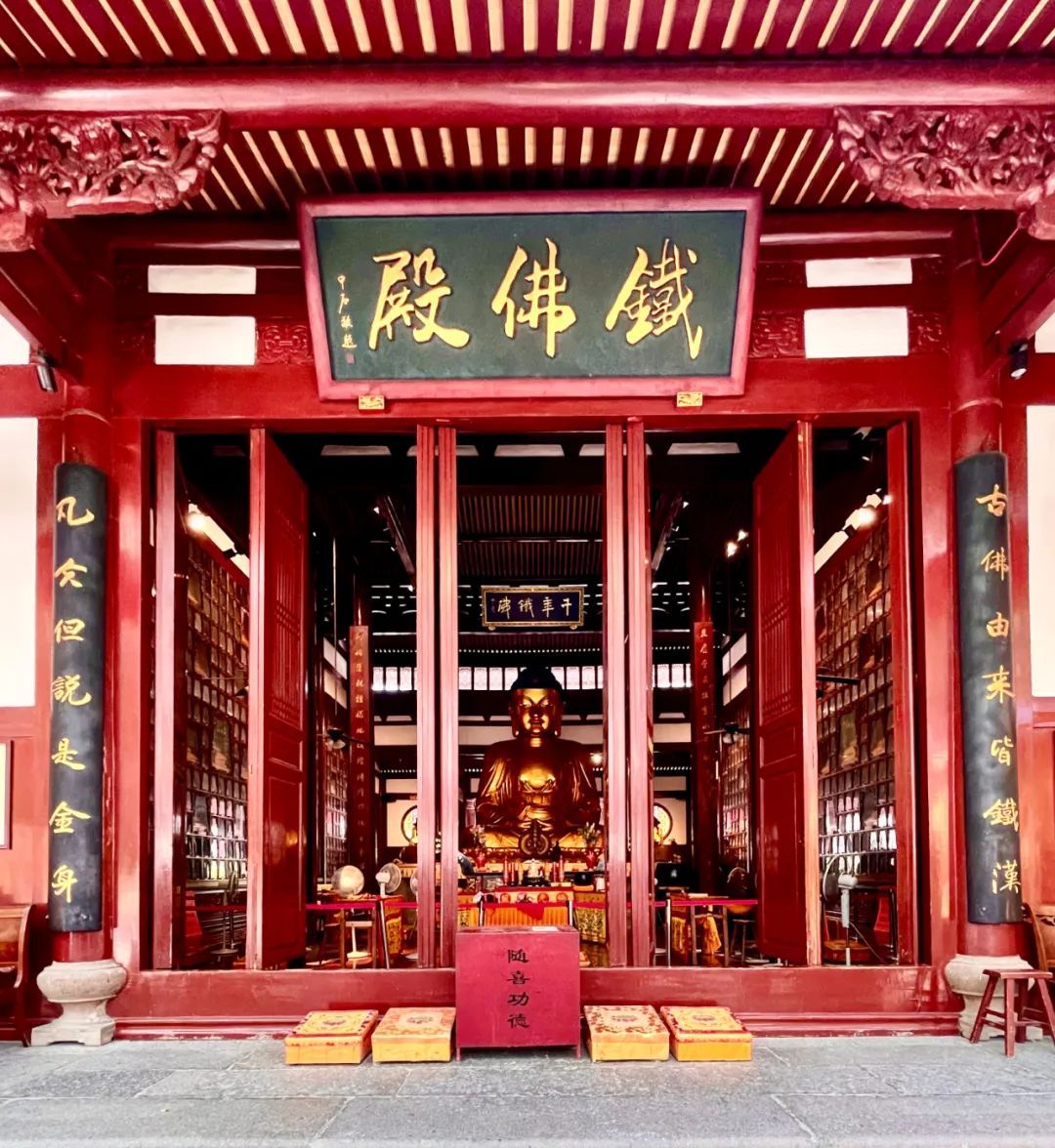 “铁佛殿”匾额是中国著名书法家欧阳中石所书。