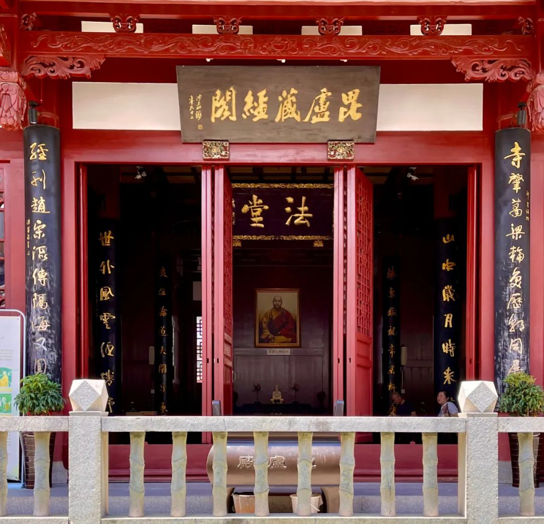 下联是讲宋代刊刻《毗卢大藏经》以及后又从日本会还之事。庋的意思是放置、保存,《毗卢大藏经》如今又保存到开元寺的藏经阁了。